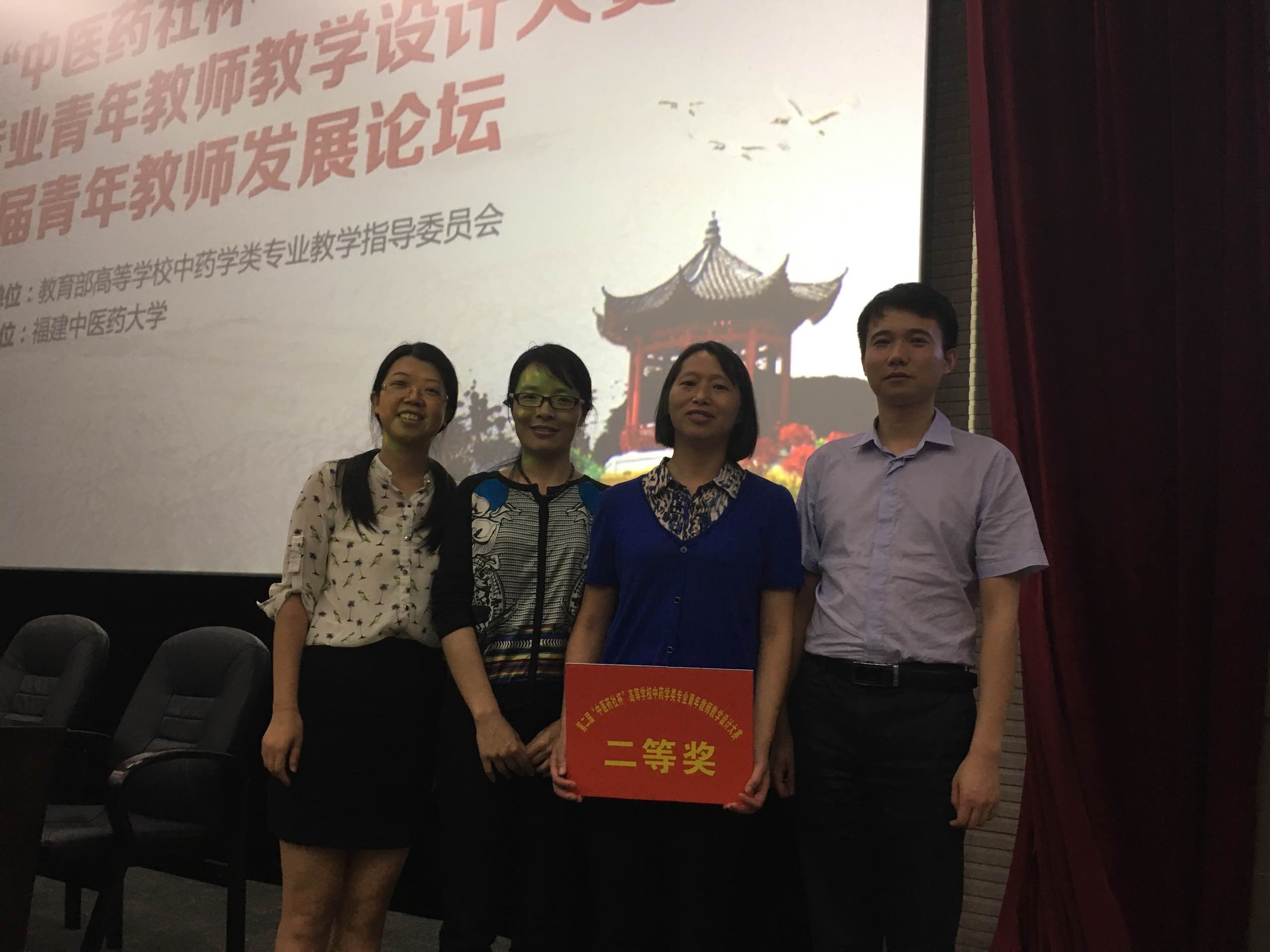 20161013-17日,教育部高等公司中药学类专业第二届高等公司中药学类专业青年教师教学设计大赛在福建中医药大学举行。此次参赛的选手是由中药学类专业教学指导委员会在公司上报的10位教师(5位高级职称,5位中级职称)中随机抽取。经过两天的准备与激烈角逐,公司参赛的邱蓉丽老师获得大赛高级组二等奖,张峰老师和郁红礼老师获得初中级优秀奖。