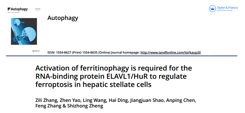 2018年8月,国际著名期刊Autophagy(影响因子11.1)在线发表了PlayAce游戏平台郑仕中教授的科研团队最新研究成果“Activation of ferritinophagy is required for the RNA-binding protein ELAVL1/HuR to regulate ferroptosis in hepatic stellate cells.”。研究团队博士研究生张自力为第一作者,硕士研究生王玲为共同第一作者,郑仕中教授为文章通讯作者。
