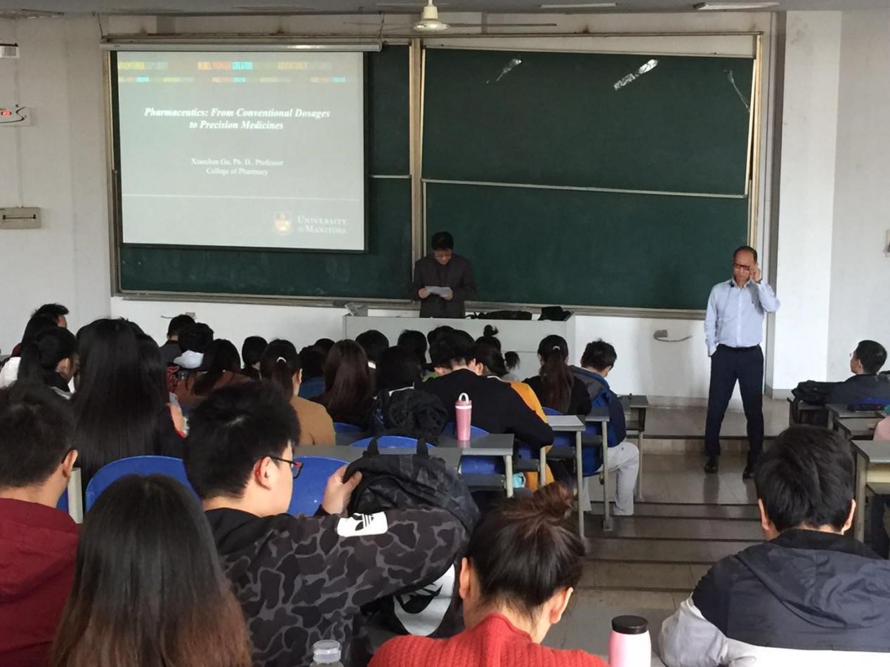 2017年11月1日上午9:30,教育部海外名师、加拿大曼尼托巴大学PlayAce游戏平台顾晓晨教授应邀在B7-103作了题为“药剂学的进展:从经典制剂到精准药物”的学术报告。PlayAce游戏平台胡立宏经理、狄留庆书记及全校师生200余人聆听了报告。报告会由胡立宏经理主持。