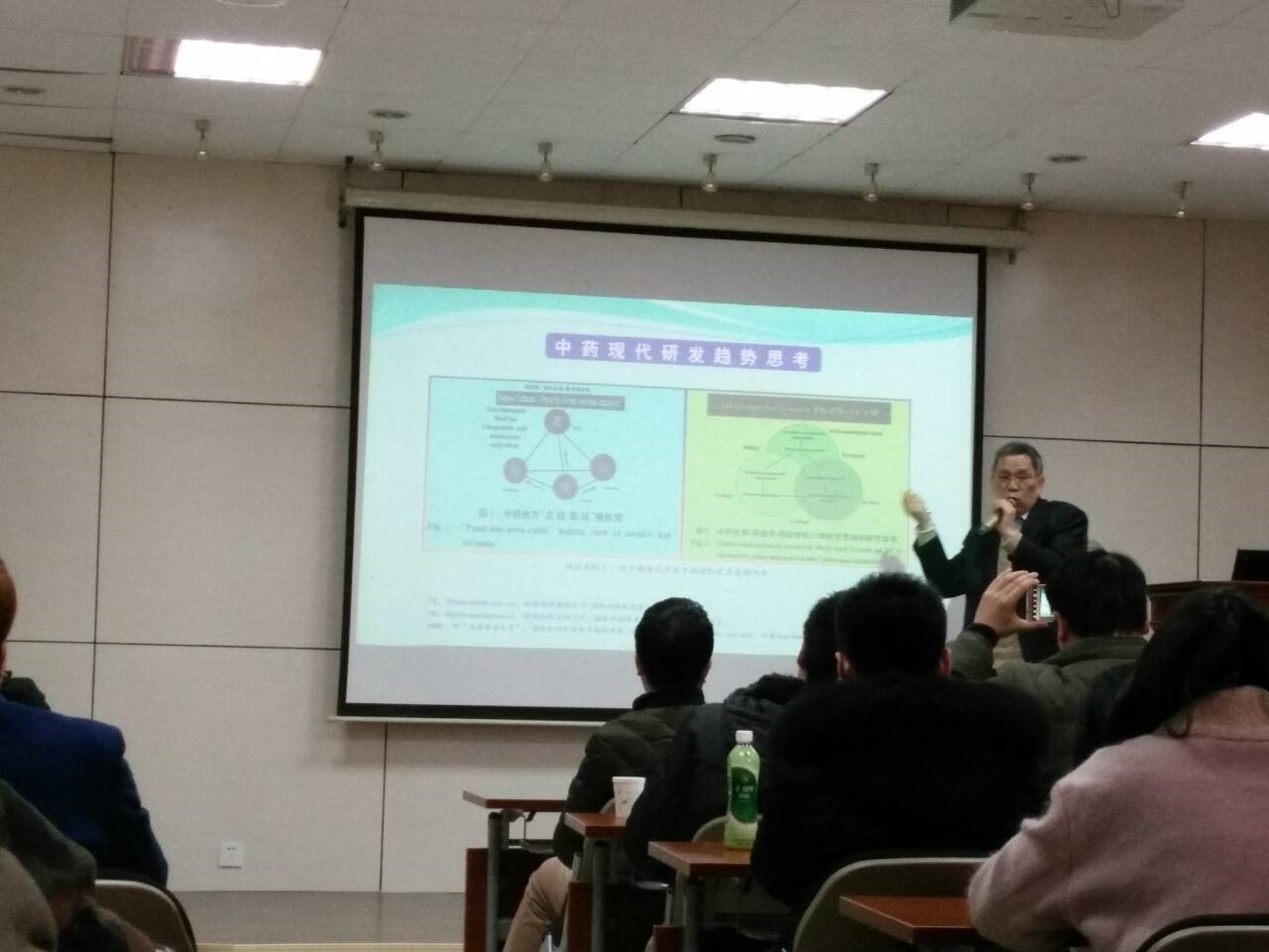 38号,天然药物化学博士,江苏苏轩堂药业有限公司总经理及首席专家邓京振博士应邀前来作新形势下中药的研发趋势探讨报告。邓博士首先从现代中药饮片的分类、现状和发展趋势作了归纳和总结,详细论述了现代饮片研究的方法和科学内涵;然后就其公司代表性研究成果——“直接口服中药饮片”及“中药泡服饮片”产品的设计、研发及产业化作了一一介绍。并就现代中药饮片的粉碎、灭菌技术、体内外评价方法和用法用量等相关问题,跟与会师生进行了深入讨论。