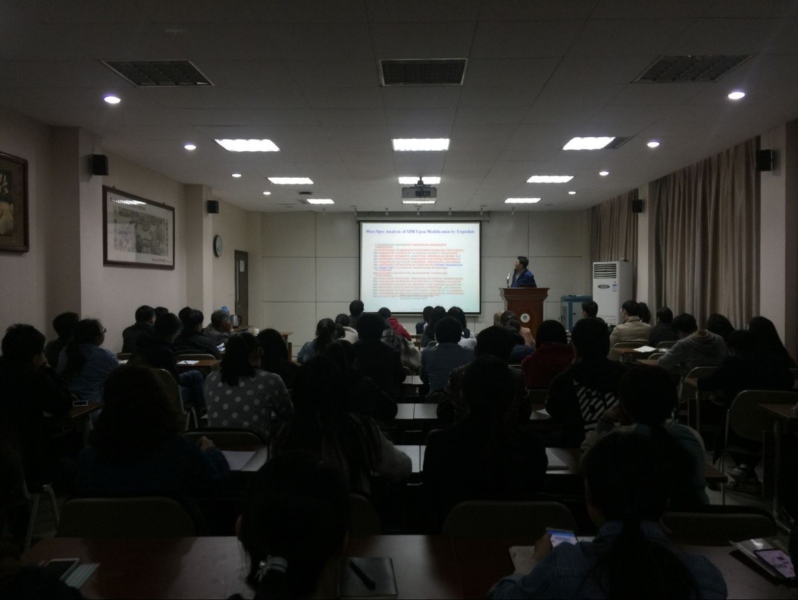 主题报告后,党教授、贺教授就天然产物靶标发现与确认的技术、方法雷公藤甲素的作用机制及进一步的结构优化策略等,跟与会师生进行了深入讨论;并就天然产物靶标发现与确认研究领域进行了深入的课题合作探讨,取得了丰富的学术交流成果。