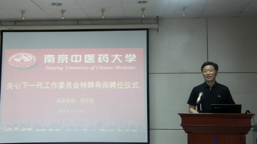王家法常务副主任为丁安伟、郭立玮、谈献和、王永山教授四位特聘导师颁发聘书。特聘导师代表丁安伟教授和员工代表16级中药学1班温浩岳同学作为师生代表进行发言。在发言中,丁教授表示自己作为特聘导师感到非常开心,也为自己从事教师这一职业教书育人感到荣幸,与年轻一代员工相处让他感受到了年轻的活力,在聘任期间将认真履行特聘导师的工作职责。温同学在发言中表达了对四位特聘导师的敬佩,要学习四位老教授的无私奉献与辛勤努力的精神,并表明作为下一代年轻员工将努力成长为品学兼优的社会主义接班人。