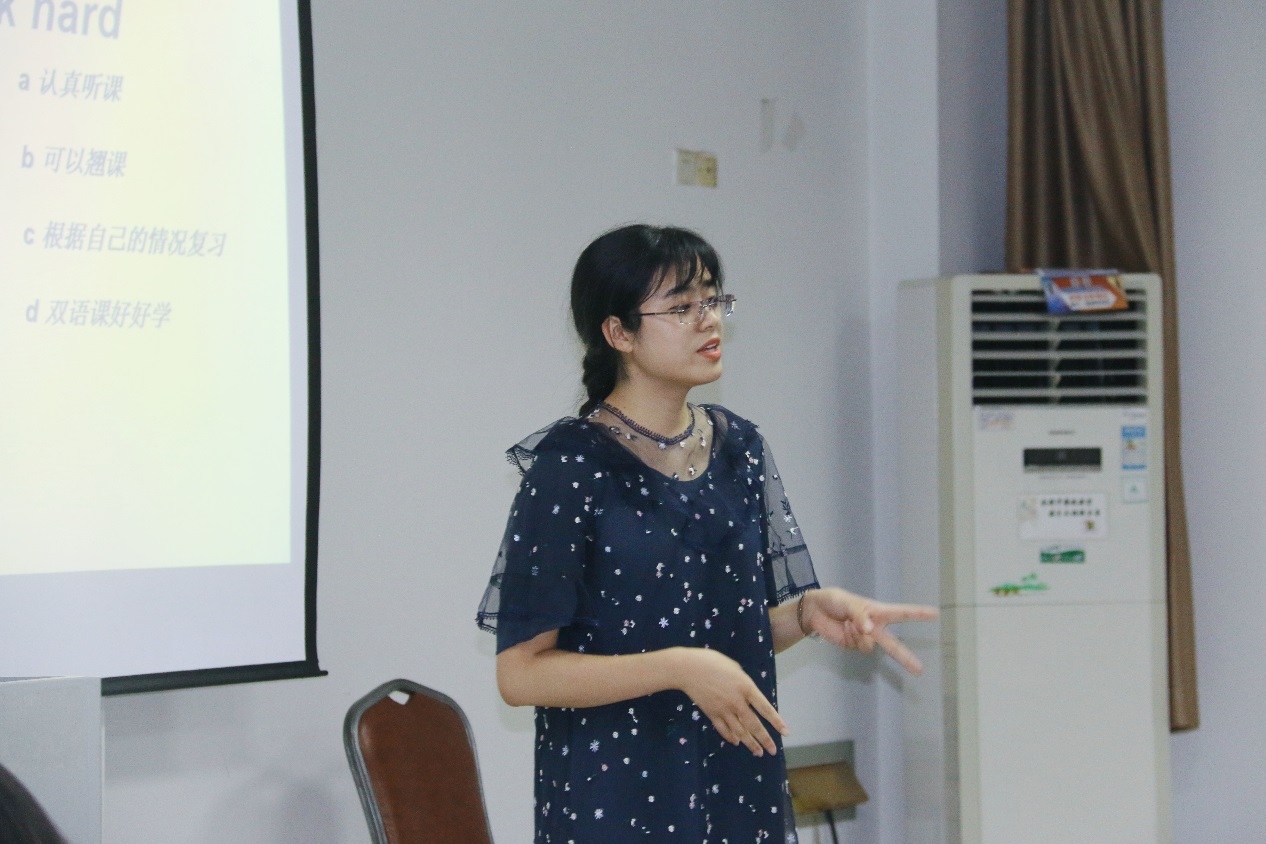 林雅娴学姐从学习方法、生活、社团、科研四个方面向同学们介绍了自己的经验。她强调大学的学习方法不同于高中,应根据老师的教学大纲来安排自己的预习任务,并推荐同学们阅读普通化学原理,以便日后更好地学习。学姐还提醒同学们要与室友多沟通,处理好宿舍关系。同时,她提到,宿舍是用来休息的,想要学习,最好的地方莫过于图书馆和教室。另外,学姐告诉同学们,社团与课程出现冲突时,应该无条件的去必修课,至于选修课或者是社团活动,则可以根据自己的意愿来选择。最后,学姐希望同学们争取抓住做科研助理的机会,在实践中寻找自己喜欢的科研方向。