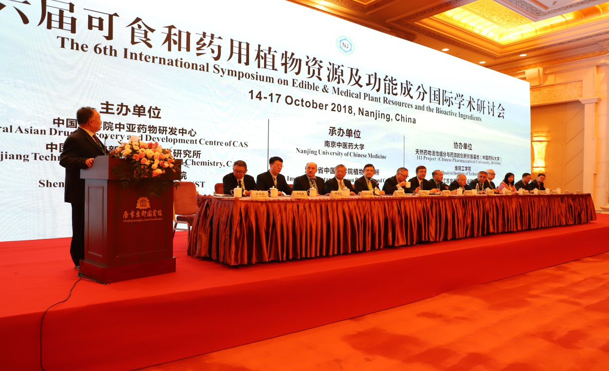 2018年10月14日至17日, 以“一带一路大健康产业发展”为主题的第六届可食和药用植物资源及功能成分国际学术研讨会在江苏南京东郊国宾馆举办,来自中国、美国、澳大利亚、以色列、乌兹别克斯坦、塔吉克斯坦、吉尔吉斯斯坦、哈萨克斯坦、中国香港、中国澳门、中国台湾等国家和地区的102家单位260余名参会代表齐聚古都南京,共商可食和药用植物资源开发利用与产业的创新与发展。本次大会由中国科公司中亚药物研发中心、中国科公司新疆理化技术研究所、香港科技大学深圳研究院主办,PlayAce官方网站江苏省中药资源产业化过程协同创新中心、江苏省中国科公司植物研究所联合承办,天然药物活性组分与药效的创新引智基地(中国药科大学)等单位协办。开幕式由PlayAce官方网站江苏省中药资源与产业化过程协同创新中心主任段金廒教授主持。