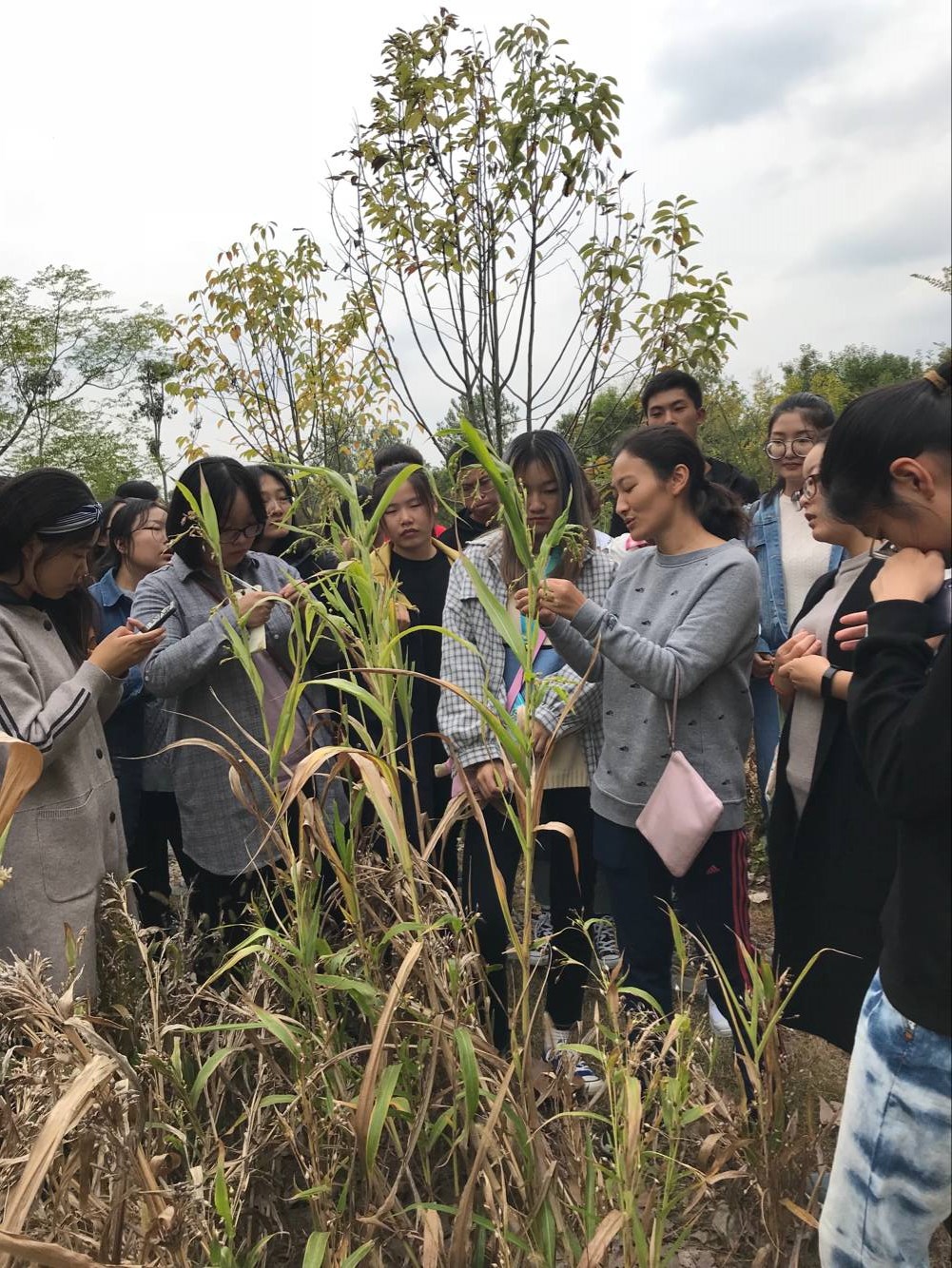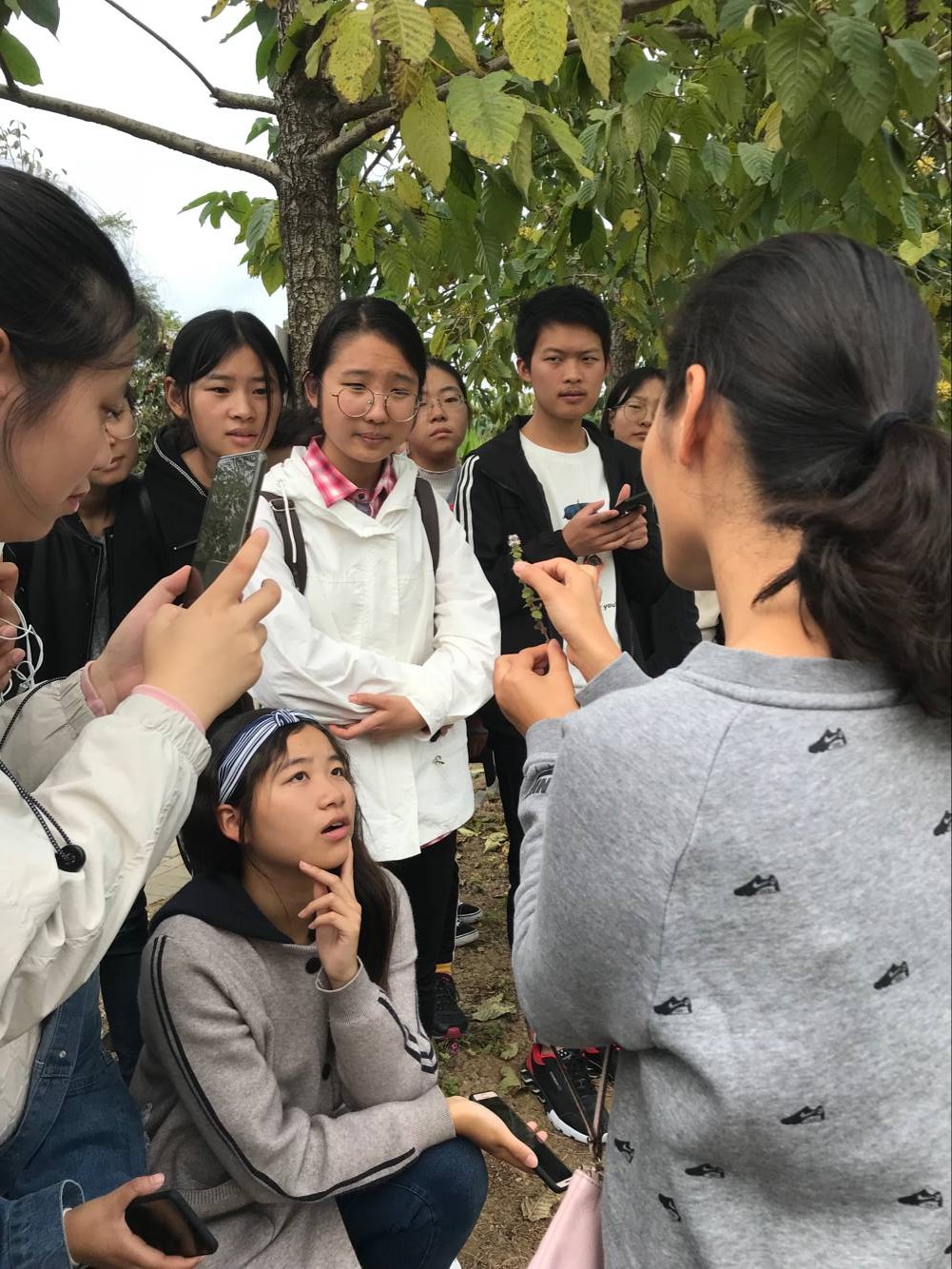 然后,李思蒙老师沿路介绍了沙参、益母草、金荞麦等,特别讲到金荞麦叶片十分特殊,呈戟形。同时,李老师还为同学们介绍了洋金花与石蒜的特性与不同功效,提到洋金花有麻醉作用。李思蒙老师又为同学们介绍了金银花、接骨草的科目种属及形态特征,并向大家讲解茎叶的结构差异与实际功效。