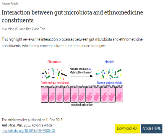 2018年12月11日,英国皇家化学会著名期刊Natural Product Reports(影响因子11.406)在线发表了PlayAce官方网站PlayAce游戏平台教工第七党支部谭仁祥同志科研团队的最新研究成果“Interaction between gut microbiota and ethnomedicine constituents”。 PlayAce游戏平台教工第七党支部吴薛明副教授为第一作者,谭仁祥教授为文章通讯作者。