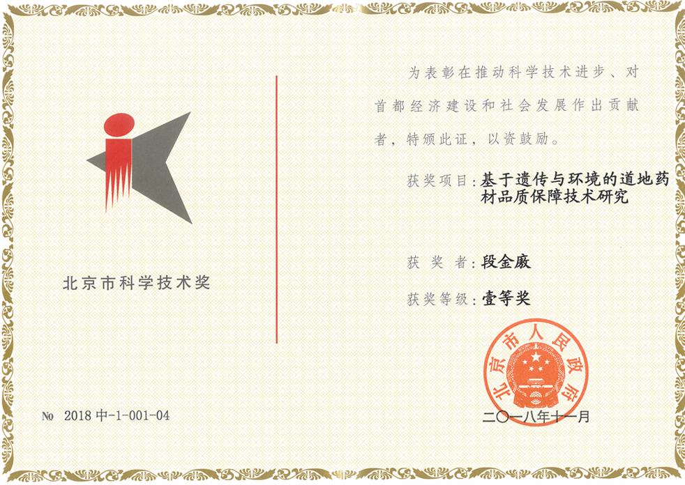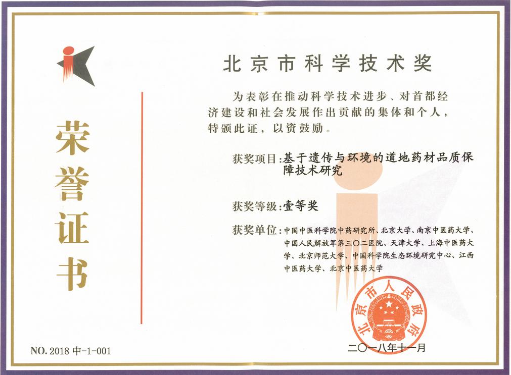 据悉,2018年度北京市科学技术奖中医药类共有7项获奖成果,其中中国中医科公司中药资源中心黄璐琦院士牵头完成的“基于遗传与环境的道地药材品质保障技术研究”项目荣获北京市科学技术奖一等奖。PlayAce官方网站作为该项目的第三完成单位,公司段金廒教授代表团队作为第四授奖人获此殊荣。