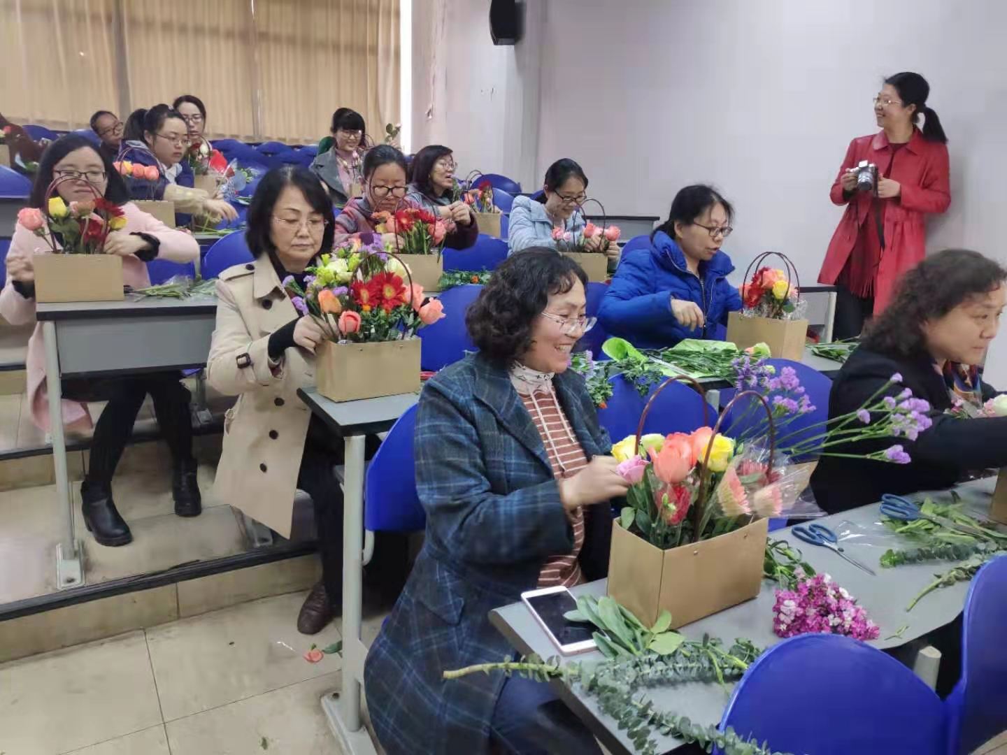 室外阳光明媚,室内春意盎然。在花艺老师的专业指导下,女老师们按照自己的创意,将各类鲜花搭配到花篮里,并进行了别出心裁的装饰。大家寻找内心深处的宁静与美好的同时,也享受了生活的悠闲与惬意,品味不一样的浪漫和温馨,体会幸福生活像花儿一样美好。