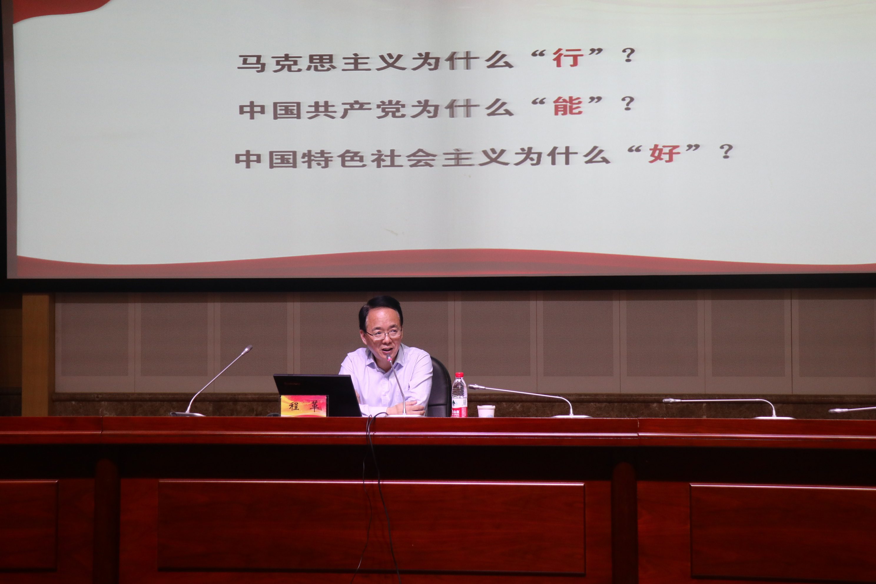 程书记将个人成长发展经历、校情、院情融入授课内容,以小见大,理论联系实际,语言亲切生动;台下员工聚精会神、反响热烈。他例举在美国留学访问期间的见闻,说明了几十年来中国经济发展模式的巨变,以及全世界对中国经济快速发展的极度关切。他分享过去的生活经历,并将35年前初到南中医报到的场景与2019级新生开学报到的场景做对比,生动展示了中国人民从“站起来”到“富起来”再到“强起来”三个历史“飞跃”的缩影,用自己的切身感受说明了改革开放给人民生活带来的质的变化。