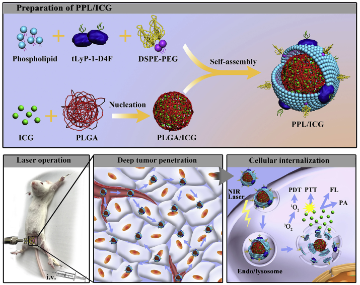 Scheme. Illustration of penetrating polymeric lipoproteins for deep tumor penetration with targeting recognition of cancer cells via dual-modality imaging and effective phototherapy.