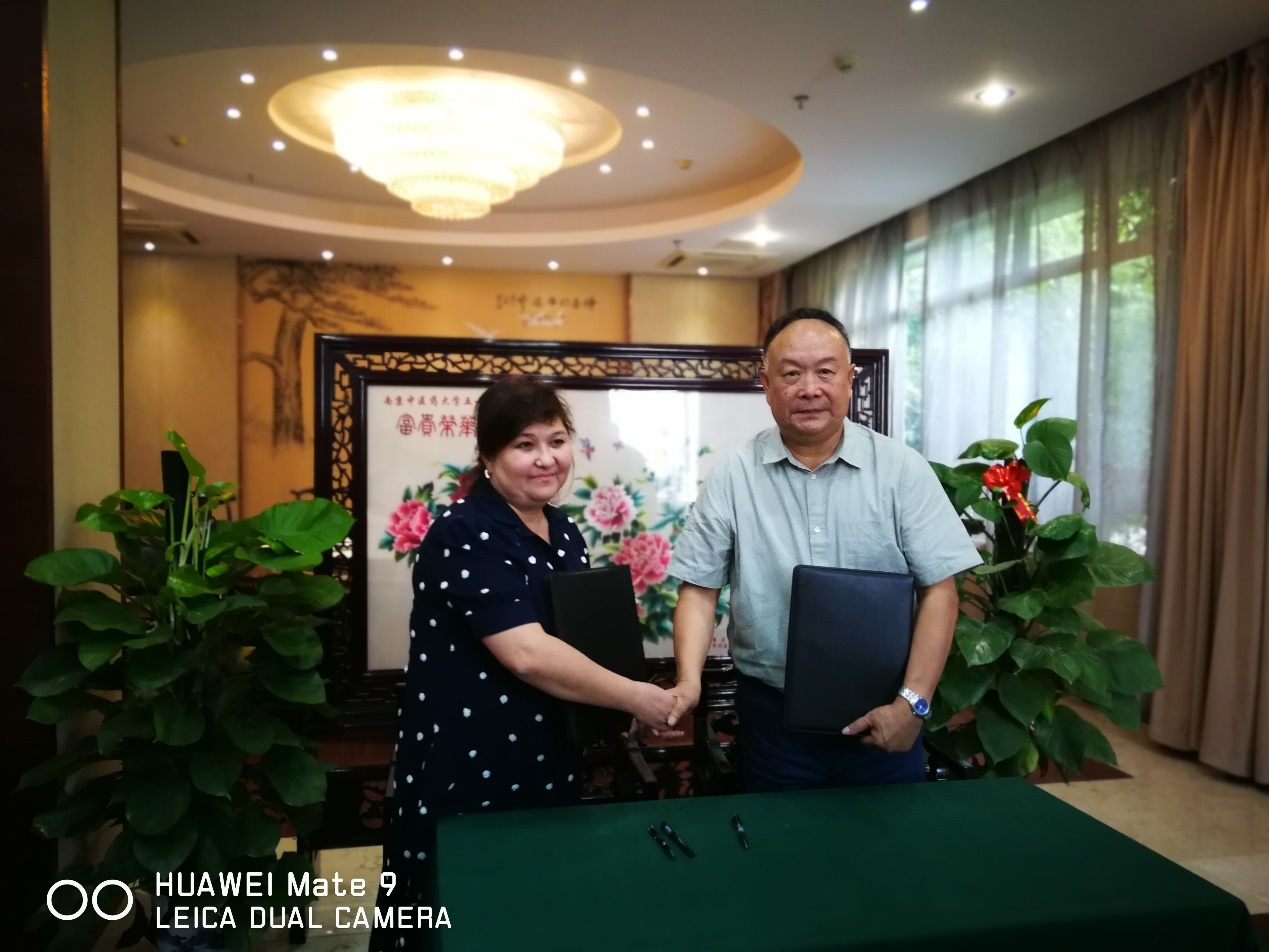 中心主任段金廒教授与乌兹别克斯坦—中国贸易协会主席常青女士签约