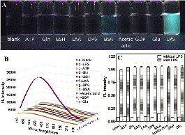 1.A robust OFF-ON fluorescent biosensor for detection and clearance of bacterial endotoxin by specific peptide based aggregation induced emission. 该文报道了一种集快速检测及清除细菌内毒素的策略。细菌内毒素具有广泛的生物毒性,存在于食品、药品及其制备过程中,可引起发热反应、微循环障碍、内毒素休克及血管内凝血等,严重时甚至会引起多器官衰竭。最常用检测手段为鲎试剂法,然而鲎生长周期长,生存化境恶化,过度捕捞等众多因素导致鲎资源的急剧下降,几乎面临灭绝。本文通过筛选特异性结合细菌内毒素的多肽,连接到聚集诱导荧光增强发光分子上,构成荧光探针TPE-pep,用于定量检测溶液中的细菌内毒素以及进行清除作用。2017级药物分析学硕士研究生唐莹莹为第一作者,朱栋教授为通讯作者。原文链接:https://doi.org/10.1016/j.snb.2019.127300