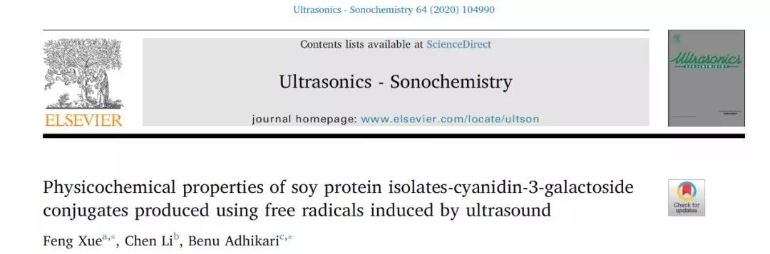 2020年1月28日,国际期刊Ultrasonics Sonochemistry在线发表了公司青年教师薛峰博士的最新研究成果“Physicochemical properties of soy protein isolates-cyanidin-3-galactoside conjugates produced using free radicals induced by ultrasound”。本文的第一作者为薛峰博士,通讯作者为公司食品质量与安全中外合作办学单位皇家墨尔本理工大学Benu Adhikari教授。