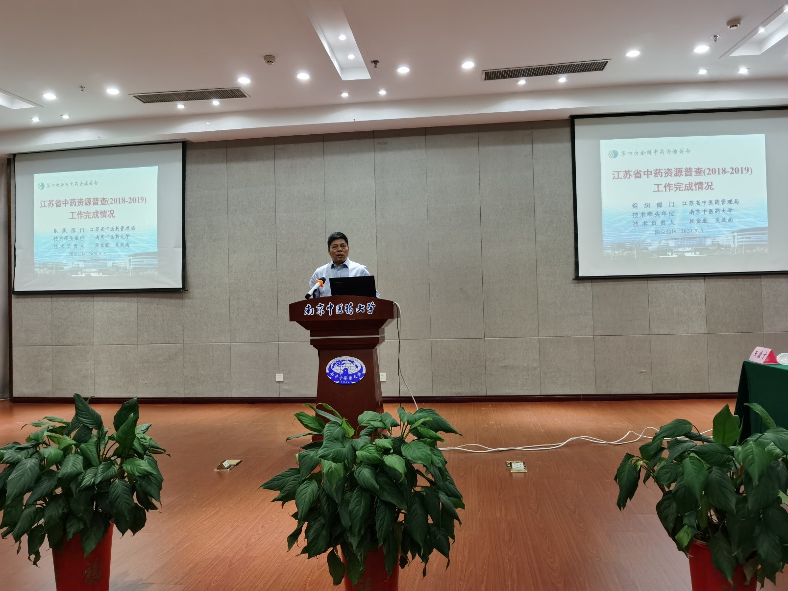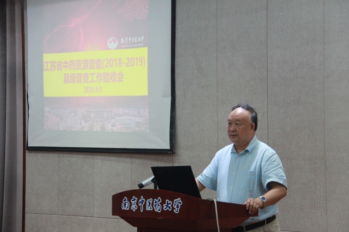 江苏省中药资源普查工作技术负责人吴啟南教授汇报了江苏省2018-2019年度中药资源普查工作整体完成情况,本批次30个县市普查任务共完成样地调查1085个,完成样方套5427套;发现药用植物种类1248种;调查到重点药用植物种类229种,栽培调查品种32种,调查市场主流品种54种;采集上交腊叶标本7701份,药材标本2353份,种子种苗1241份;调查记录传统知识57条,拍摄照片134099张;已发表论文32篇,编写著作5部,编制形成各普查县工作报告30份,制定普查县中药材保护和发展规划30份;新培养普查队员100余名,全面完成了本年度普查任务指标,提请验收。