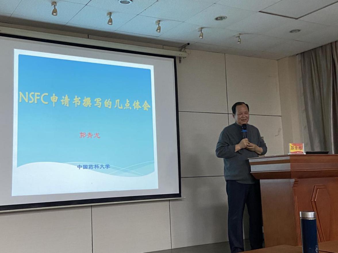 随后,郭教授从基金的选题、标书撰写各环节要点等,结合自身申报以及评审经历,深入浅出地介绍了基金申请书撰写的注意事项。整个报告,郭教授的语言幽默风趣,让在座的青年老师和员工受益匪浅。