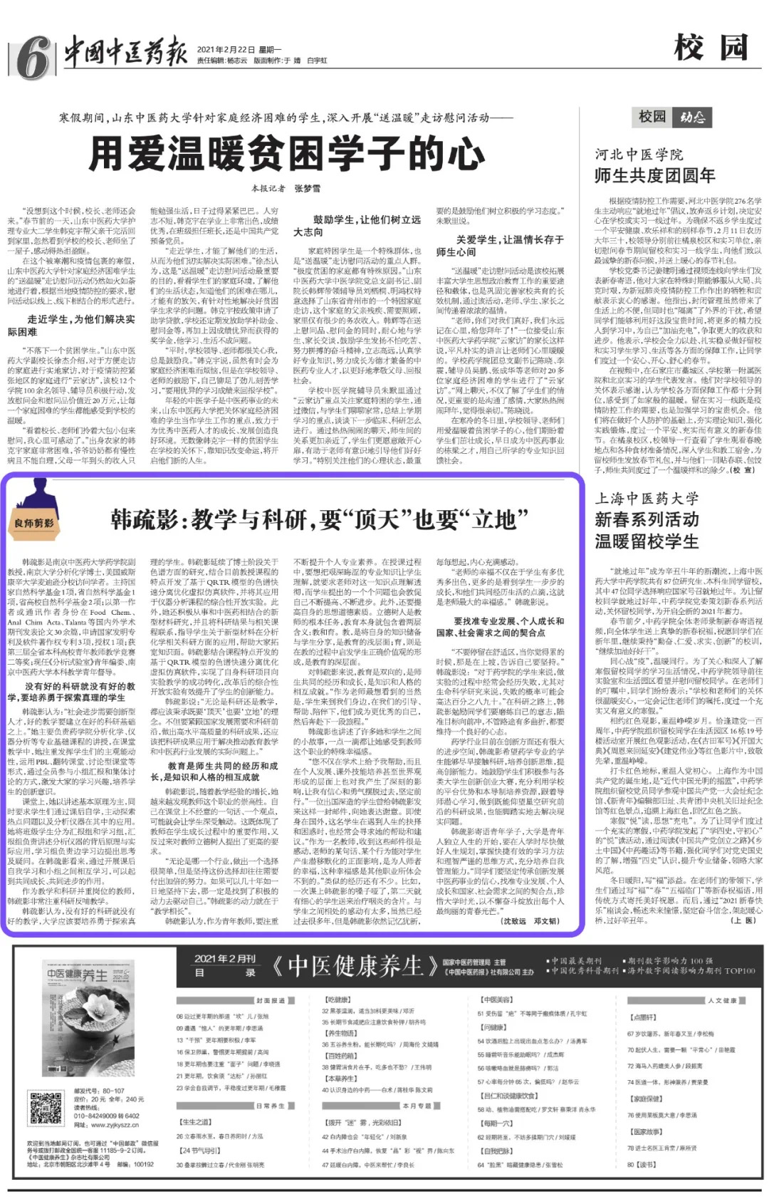 中国中医药报2月21日在第6版“良师剪影”板块以《韩疏影:教学与科研,要“顶天”也要“立地”》为题,报道了公司韩疏影副教授的事迹。