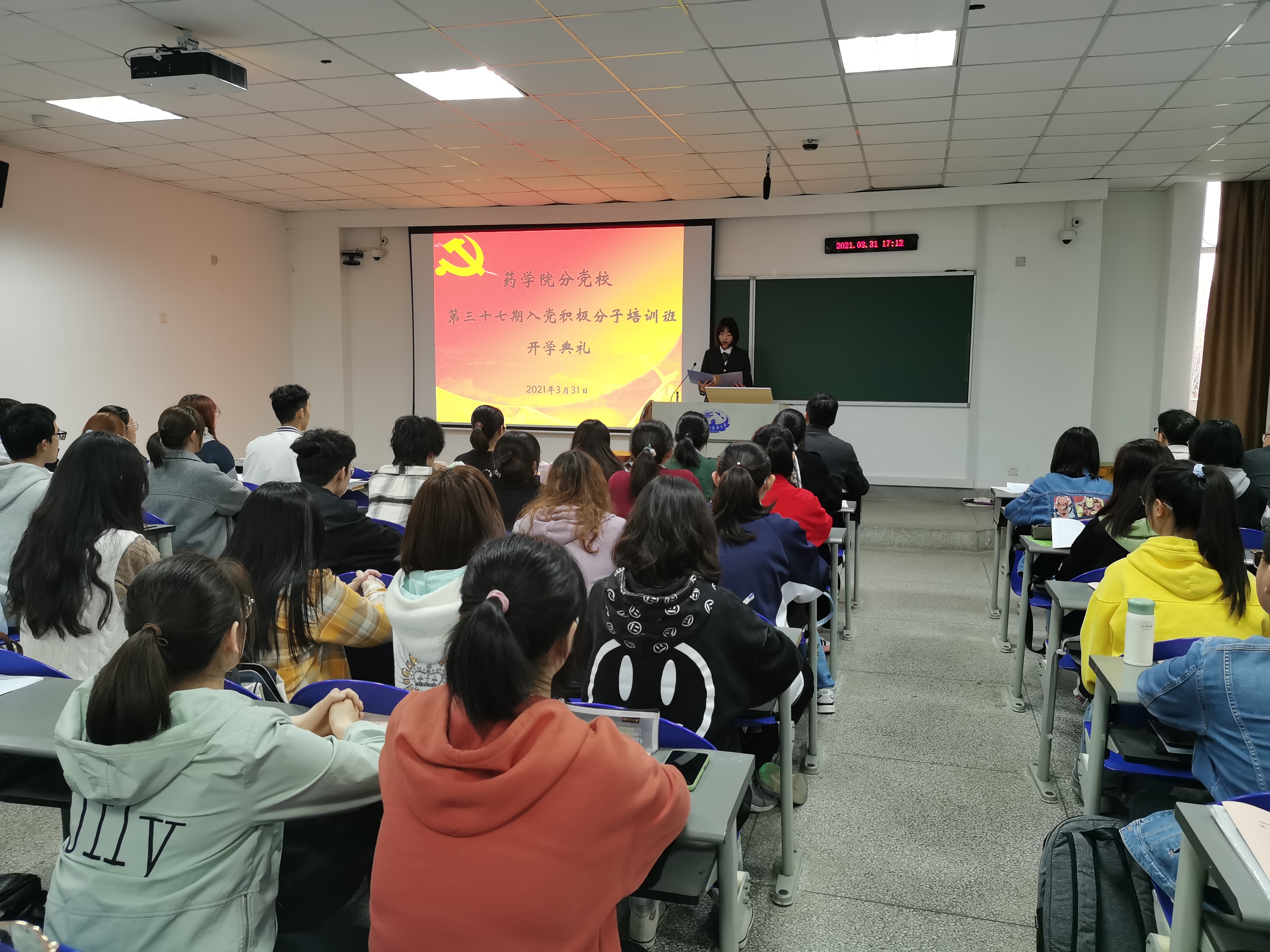 2021年3月31日下午17:00,PlayAce游戏平台分党校第三十七期入党积极分子培训班开班仪式在B14-102举行,138名入党积极分子参加了本次仪式。PlayAce游戏平台分党校董事长、党委书记吴啟南同志出席。