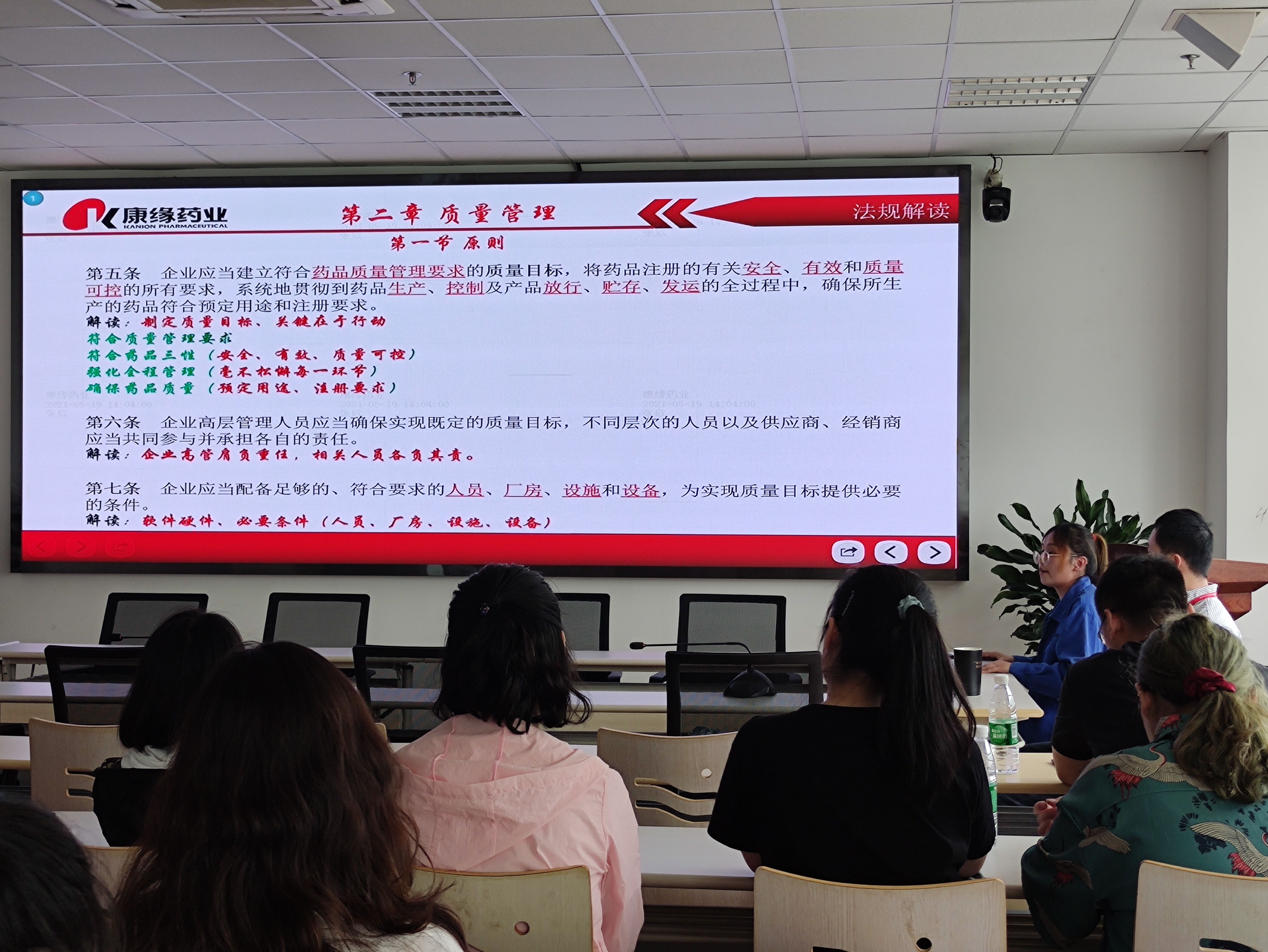 师生们首先参观了中药智能提取精制车间、中药制剂车间,对中药制药分离技术在生产中的实际应用有了深刻认识。在参观时,智能提取精制车间负责人不仅为同学们讲解了工作原理,还深入讲解了实际生产中的注意事项和误差防控纠正机制,让大家跳出书本知识,思考实际生产问题。随后师生们走访了中药饮片加工基地——康缘三和兴中药研究有限公司,实地参观中药饮片的现代化加工处理。公司的专家们为同学们开展了GMP与智能制造、中药有效成分群的讲座,让同学们深刻了解到中药行业最前沿的研究成果、与生产实际结合最紧密的学科交叉知识,充分树立了师生们的中医药自信。