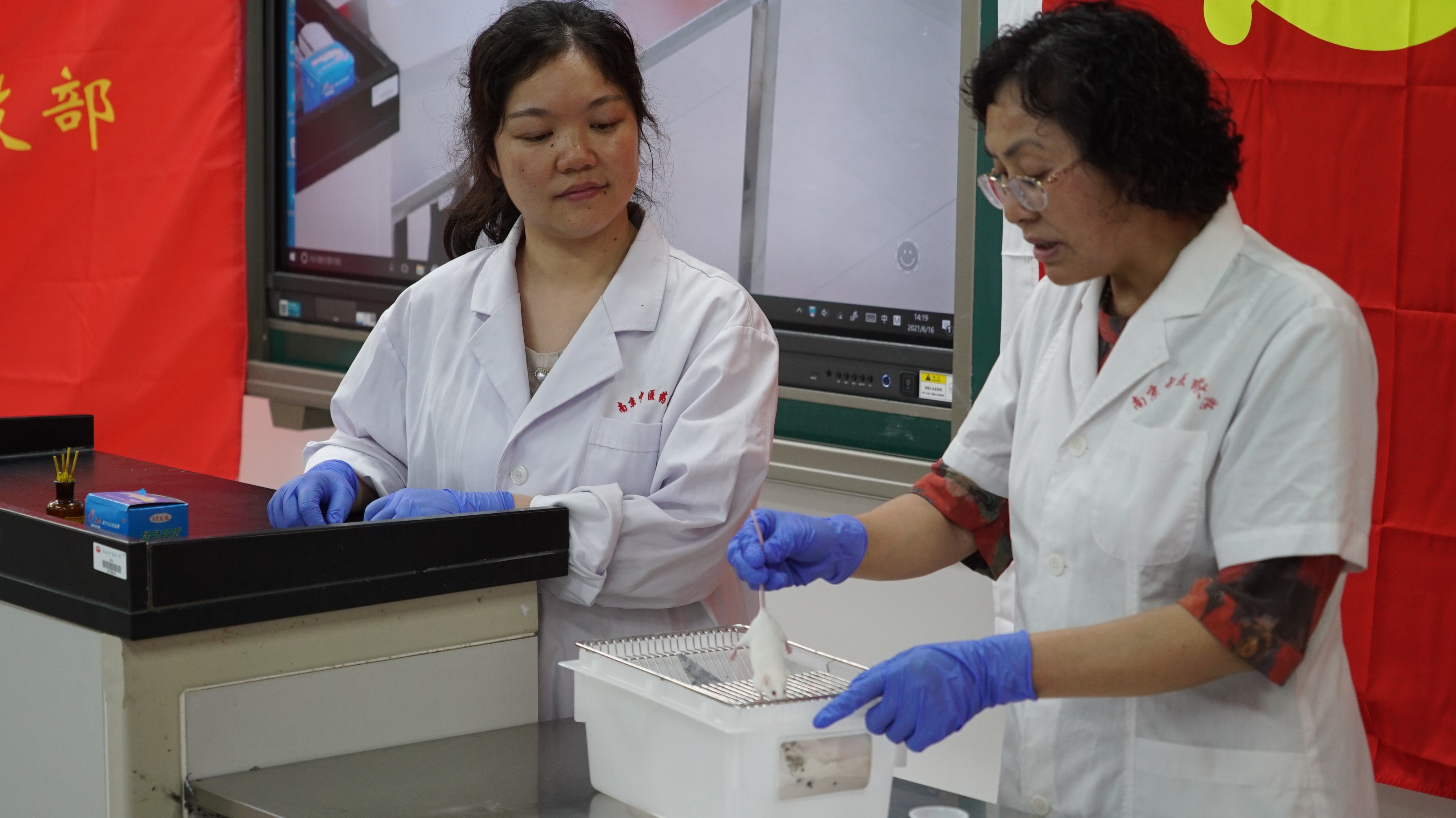 许惠琴教授对“小鼠捉拿和灌胃操作”课程进行示范操作,讲解教学要点与细节,如捉拿的手法,灌胃的方向,错误方法的弊端等,在座党员及群众受益匪浅。