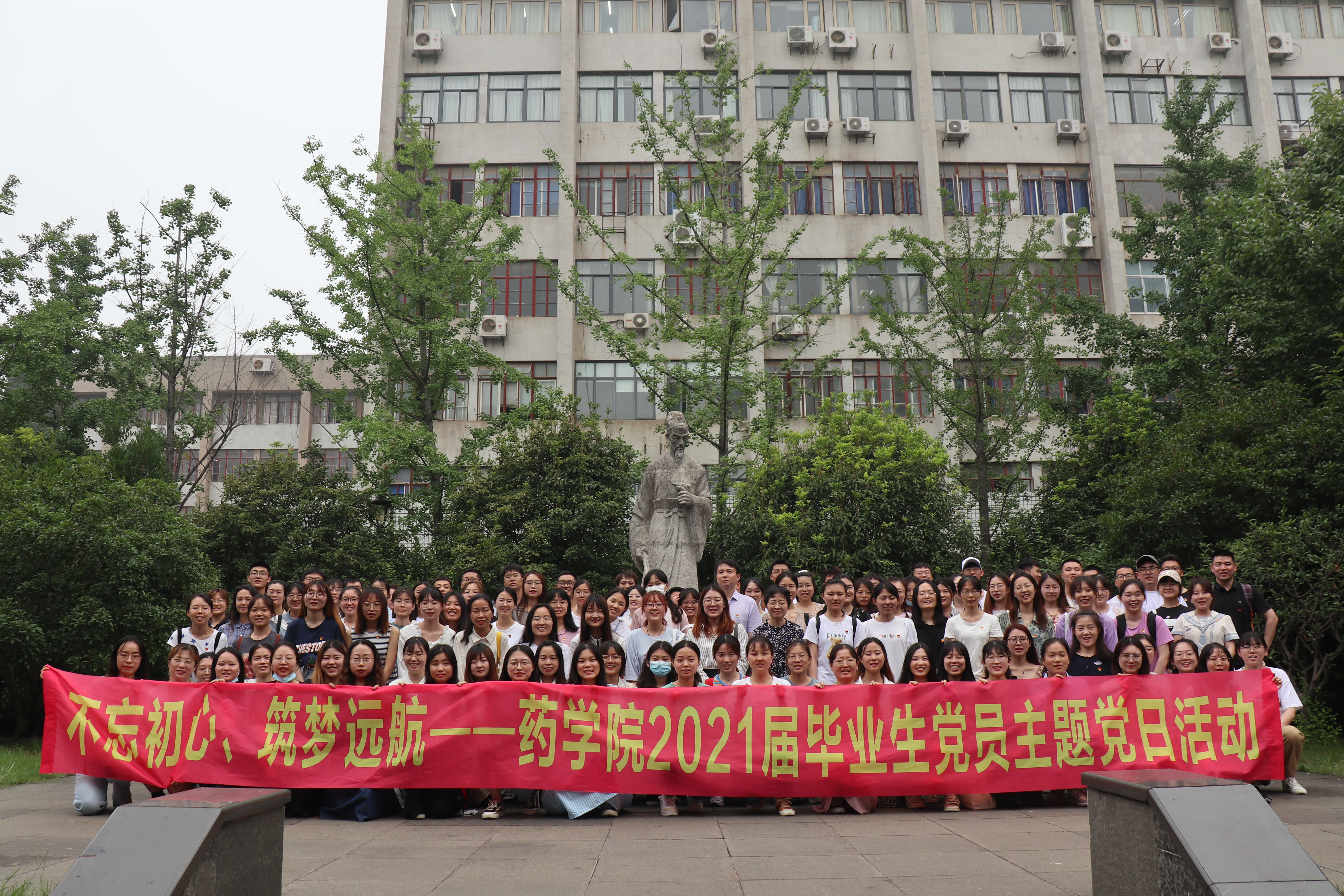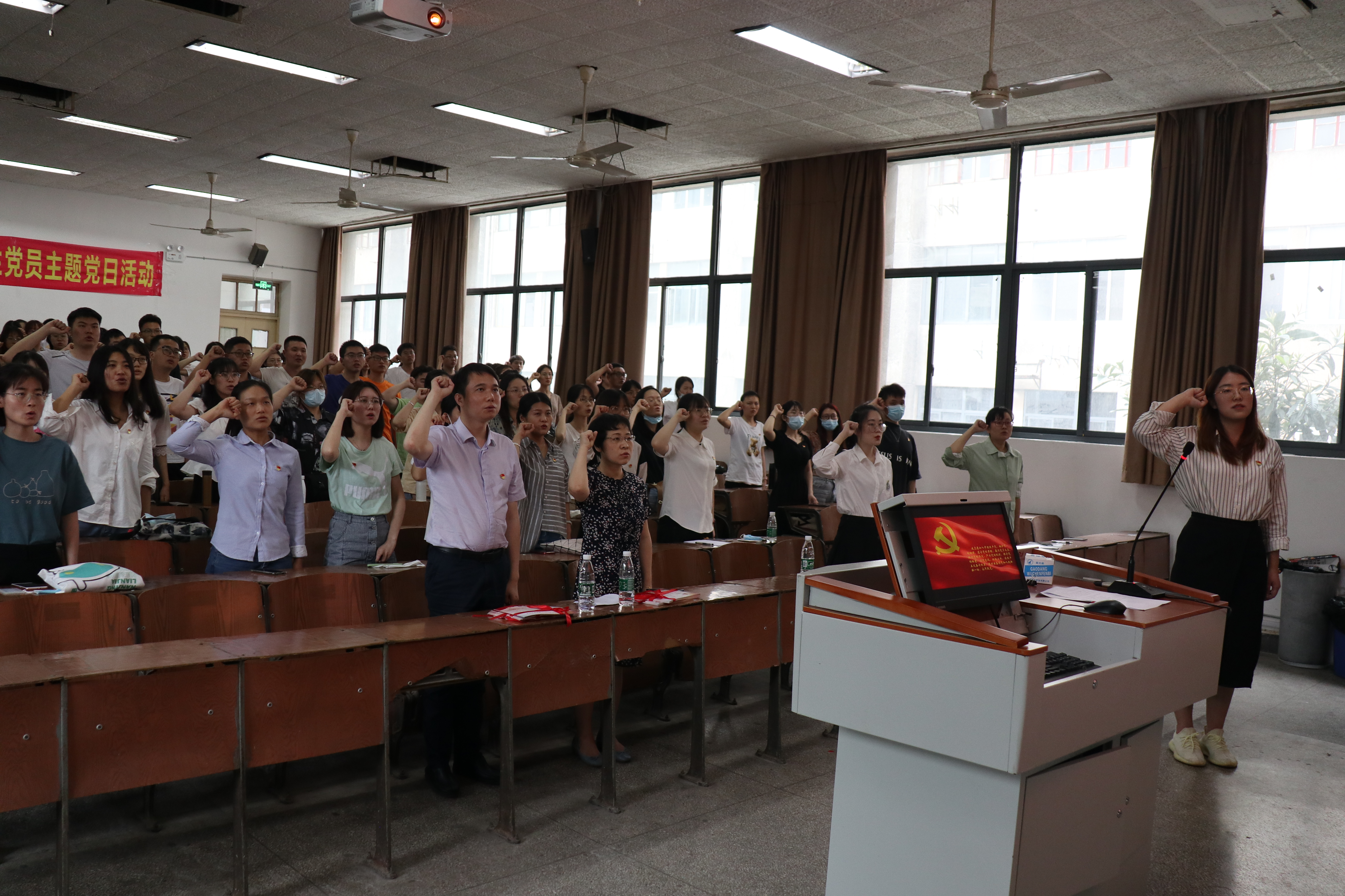毕业生党员代表钮敏洁讲述了作为中医药事业的接班人,青年党员更应在回望百年党史学习中汲取推动中医药振兴发展的智慧与力量,发展传承中医药的初心。随后,全体党员面向党旗,重温入党誓词,短短十二句话,八十个字,字字千钧,提醒毕业生党员们牢记党员身份,不忘入党初心。