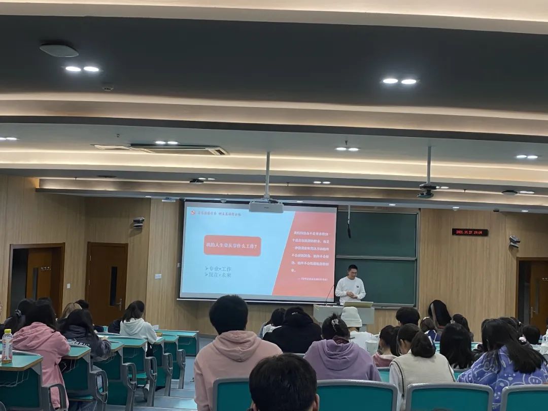 最后,程立辉老师提到钱伟长弃文从理,决心科学救国,且学成后断然放弃美国高薪研究岗位回国任教,开启了60余年的教育事业生涯的故事,同时引用钱老董事长的话“我没有专业,国家需要就是我的专业”告诫同学们要坚定理想信念,树立正确择业观。马克思也提到:“实践是联系主客观的桥梁,人们只有在改造客观世界的实践活动中才能检验认识的正确与否”,老师也告诫我们需要想清楚我的人生要从事什么工作,然后通过互联网、书籍、校外实习等来坚定我们的职业选择。
