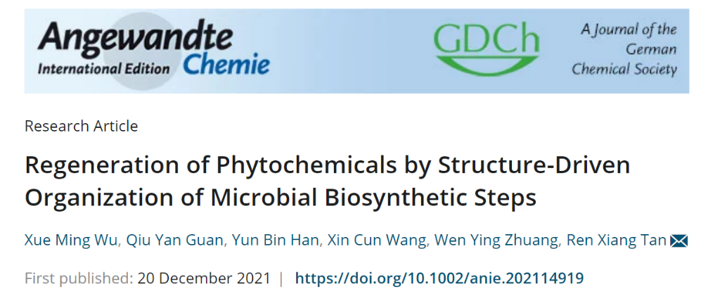 近日,PlayAce官方网站谭仁祥教授团队在国际知名学术期刊Angew. Chem. Int. Ed.(IF: 15.336)在线发表题为 “Regeneration of Phytochemicals by Structure-Driven Organization of Microbial Biosynthetic Steps” 的金丝桃素合成生物学制备最新研究成果。