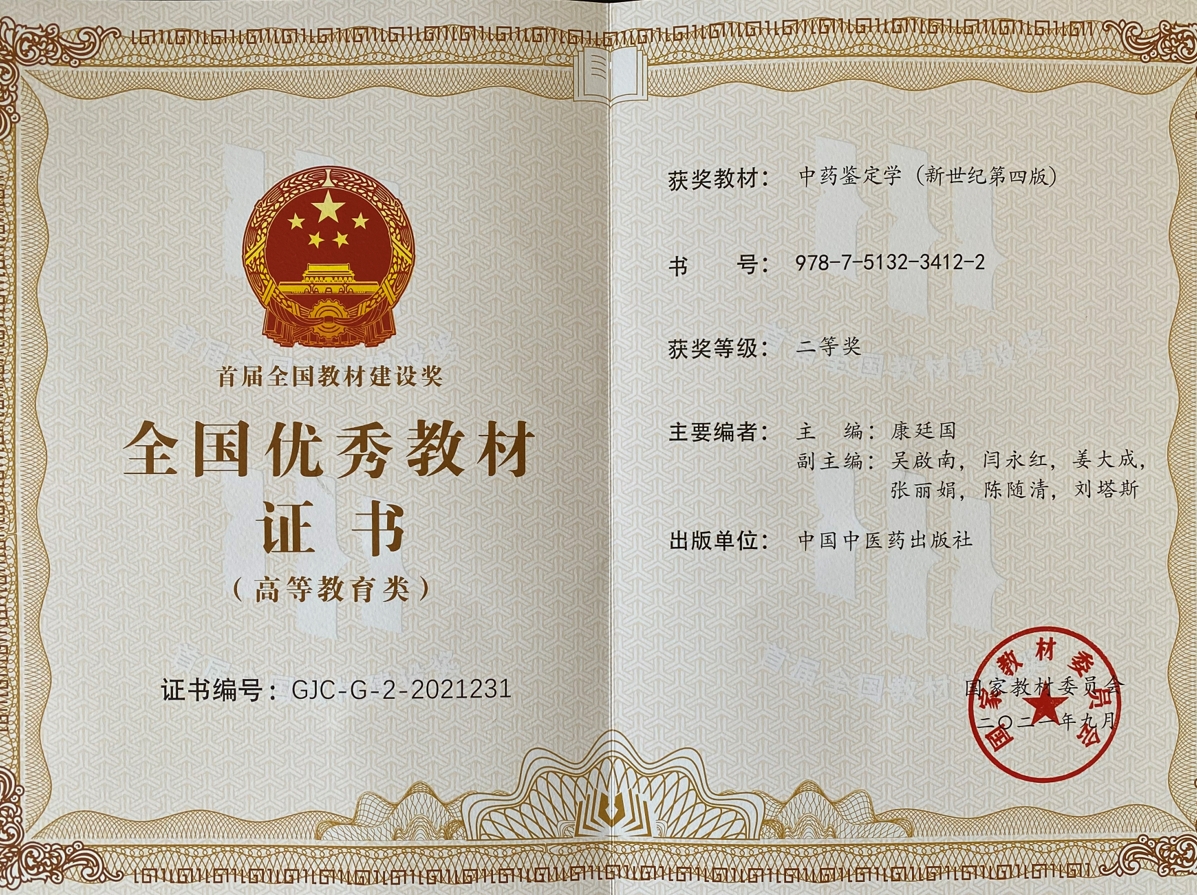 公司吴啟南教授副主编的《中药鉴定学(新世纪第四版)》获得二等奖。全国教材建设奖是教材领域的最高奖。
