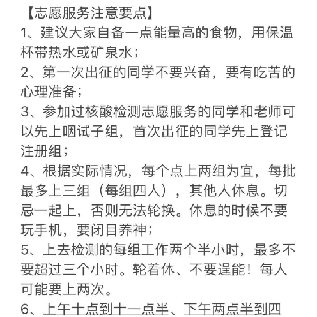 到达各自核酸检测点后,同学们迅速行动。接过一次性防护服、口罩、面屏、手套、鞋套等物品,在带队老师及现场医护人员的指导下穿戴妥当。分成信息录入、核酸采检、巡查引导三组,合理分配,轮番上阵。