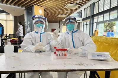 2021级中药药理学研究生母昕茹鸿运嘉园进行核酸采样工作,她说:“士披肝沥胆,警寄身刀锋。初到采样地点时,内心不免有些不安,但当穿上白色防护服、拿起咽拭子的时候,油然而生的使命感,宛如一针强心剂,让我全身心的投入到工作中。简单的采样动作,内心已经默默演练了无数遍。手消,采集,收集,流程进行的快而不紊。“您坐,微微抬头,啊……好的。”简单的一句话已经记不清重复了多少遍,可社区居民的一声“谢谢,辛苦了”轻而易举的就赶走了疲倦。也许疫情蔓延带来了黑暗,但我愿化作一颗星星,为漆黑的长夜,画上一个光点。南京,加油!”