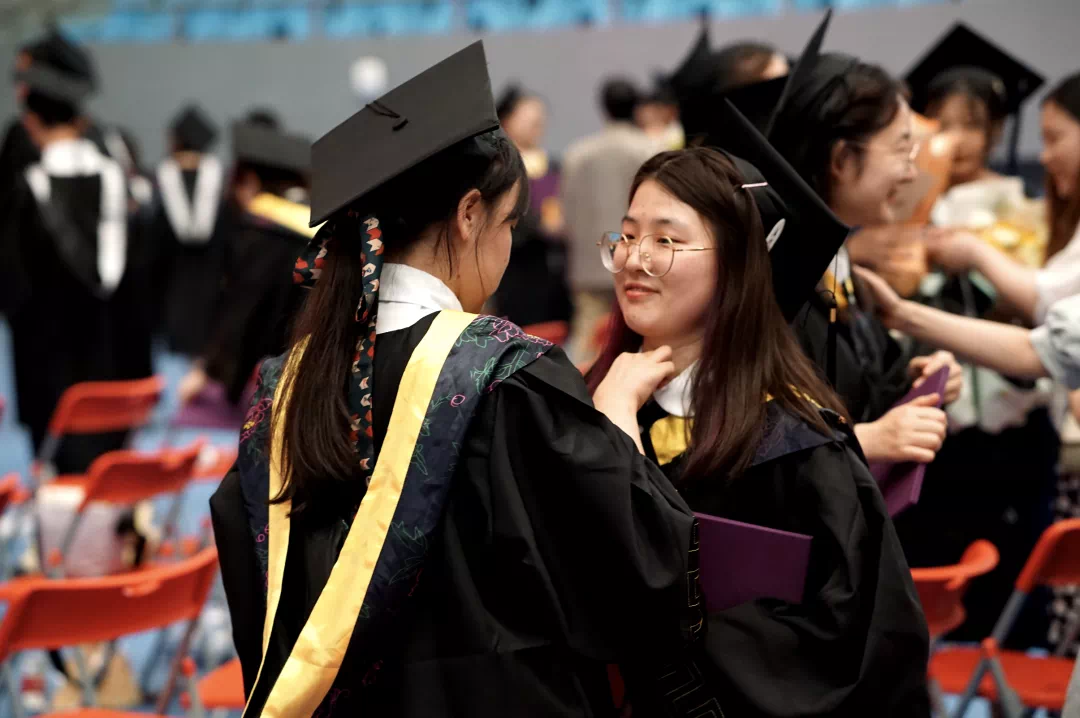 典礼至此,迎来了最激动人心的时刻。全场毕业生依次登台,学位委员会委员为毕业生们拨穗正冠,留下深情嘱托。毕业生们郑重接过学位证书,收获毕业喜悦,收获美好祝福,收获满满回忆!
