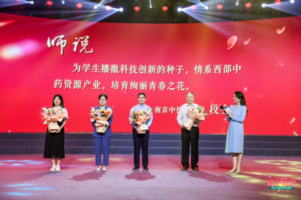 9月8日,“九月的芬芳”2022年江苏省庆祝教师节主题活动在江苏教育频道播出。活动现场,江苏省教育厅厅长、省委教育工委书记葛道凯向段金廒教授等“2022江苏教师年度人物”获奖教师颁奖并表示祝贺。第二批“全国高校黄大年式教师团队”中药资源学教师团队代表赵明、宿树兰和2021级博士研究生武文星参加活动。