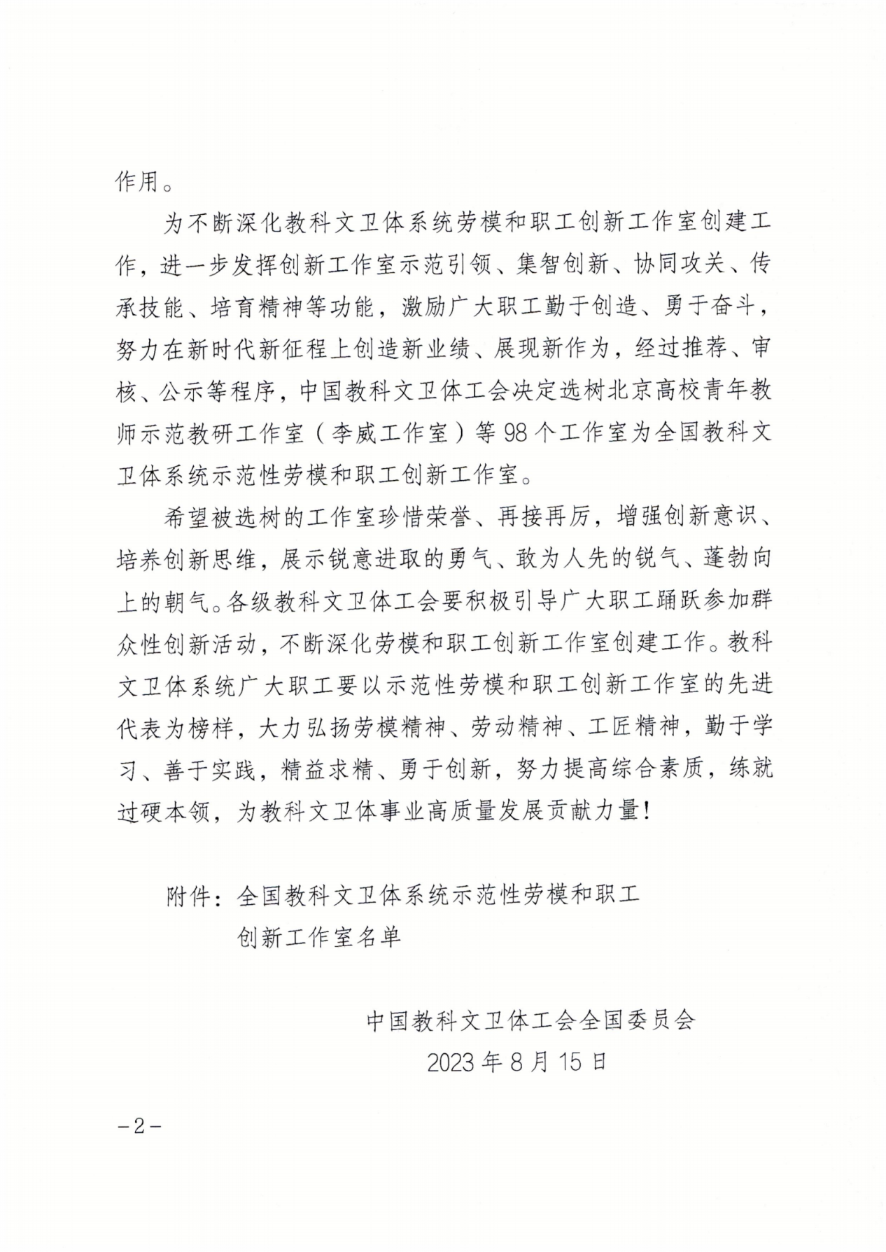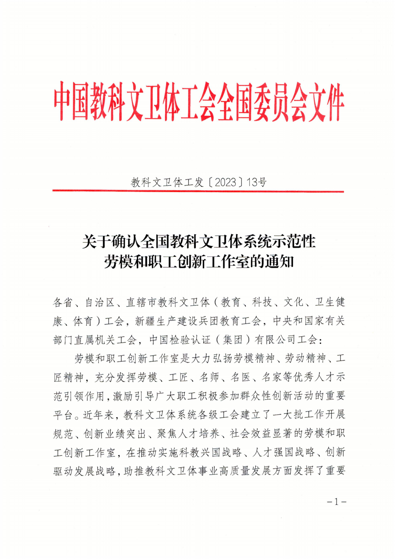 8月15日,中国教科文卫体工会全国委员会公布了“全国教科文卫体系统示范性劳模和职工创新工作室”名单。PlayAce游戏平台“段金廒劳模创新工作室”被评为“全国教科文卫体系统示范性劳模和职工创新工作室”,是江苏高校本次唯一入选的劳模创新工作室。
