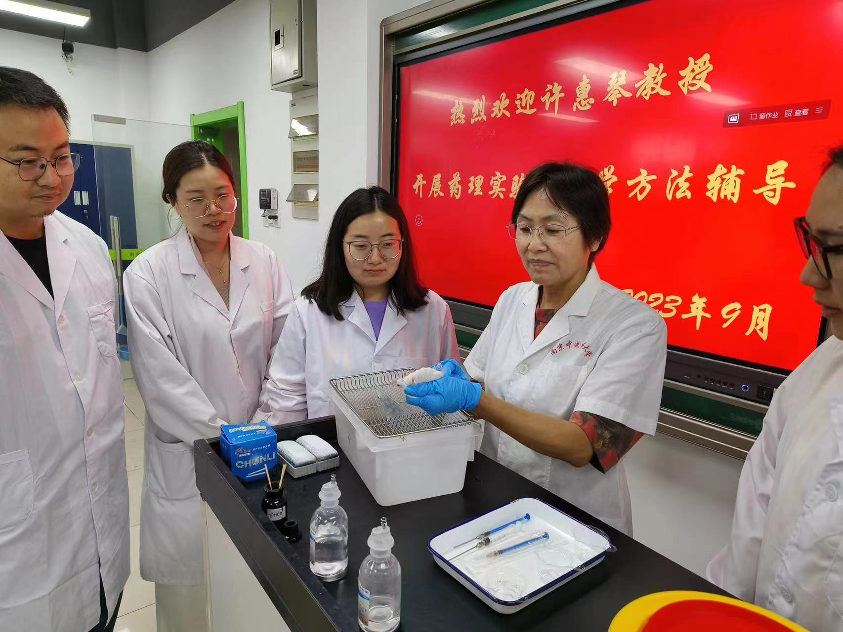 2023年9月19日下午药理系相应公司号召,为更好地帮助新入职教师快速地适应教学岗位要求,规范教学过程,提升教学技能,邀请药理学资深专家,教学经验丰富的博士生导师许惠琴教授退休返岗,发挥余热,对药理系教师、实验中心教师和新入职教师“传帮带”,开展药理学实验教学方法辅导培训。