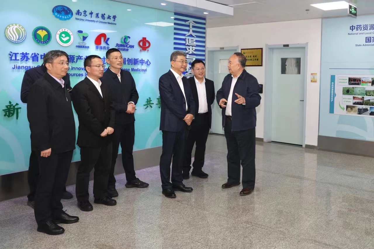 吴岩一行首先来到位于唐仲英科技楼的中药资源产业化与方剂创新药物国家地方联合工程研究中心,听取了中心主任、全国高校黄大年式教师团队带头人段金廒教授就团队立足国家战略及行业需求,围绕中药资源产业提质增效与绿色发展、方剂基础研究与创新药物研发两大板块开展的理论创新和产业化实践探索情况介绍,对中心将科学研究和人才培养融入破解制约行业产业发展“卡脖子”难题、助力经济社会发展所取得的成绩表示高度认可,对中心将科技成果转化为富民产业培育及循环经济发展的中药材产业精准扶贫模式表示赞赏。吴岩指出,提升中药资源全产业链的资源利用效率和效益,必将有力推动我国中药资源循环经济和产业绿色发展体系构建,为国家发展循环经济,实现碳达峰、碳中和目标提供重要支撑。