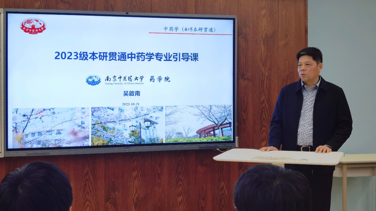 10月31日下午,公司党委书记吴啟南在B5教学楼为2023级中药学(本博贯通联合培养)(新中PlayAce游戏平台班)的同学们开展了专业导论教育。班级辅导员、班主任参加了本次讲座。