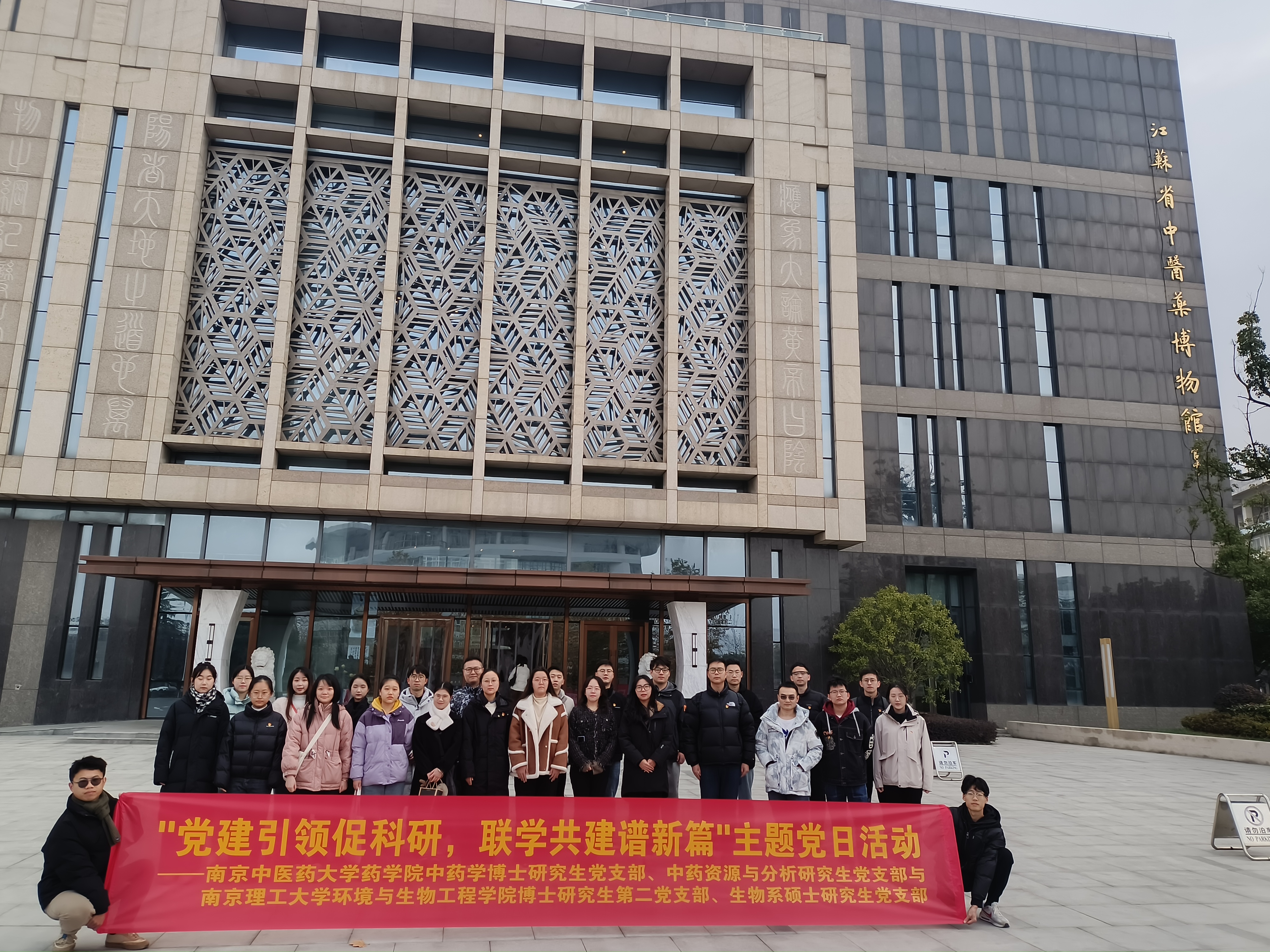 2023年12月14日,公司中药学博士研究生党支部、中药资源与分析研究生党支部与南京理工大学环境与生物工程公司博士研究生第二党支部、生物系硕士研究生党支部开展联学共建主题党日活动。本次活动由公司中药学专业研究生党员带领外公司党支部共同感受“中医药文化之旅”,探索南京各高校研究生“党建+学科”联学共建新路径,旨在促进研究生开展多学科交叉学习,引导研究生增强文化自信。南京理工大学环境与生物工程公司研究生辅导员黄子奇,公司研究生辅导员石乔梓参与活动。