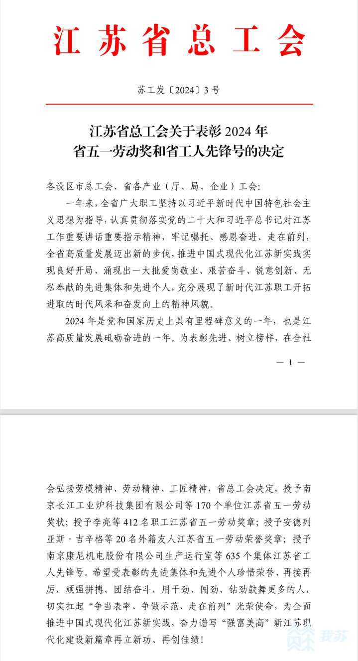 为表彰先进、树立榜样,在全社会弘扬劳模精神、劳动精神、工匠精神,值此五一劳动节来临之际,江苏省总工会发布了《关于表彰2024年省五一劳动奖和省工人先锋号的决定》(苏工发〔2024〕3号),PlayAce游戏平台麻彤辉教授荣获“江苏省五一劳动荣誉奖章”。