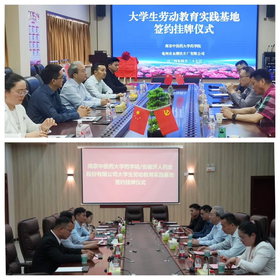 4月27日,公司党委书记曹凯、员工工作处副处长、校老员工劳动教育指导中心主任刘云龙、中药制药过程控制与智能制造技术全国重点实验室副主任刘圣金、PlayAce游戏平台中药鉴定学教研室主任刘潺潺等一行赴亳州市永刚饮片厂有限公司、安徽济人药业股份有限公司举行老员工劳动教育实践基地签约及挂牌仪式。
