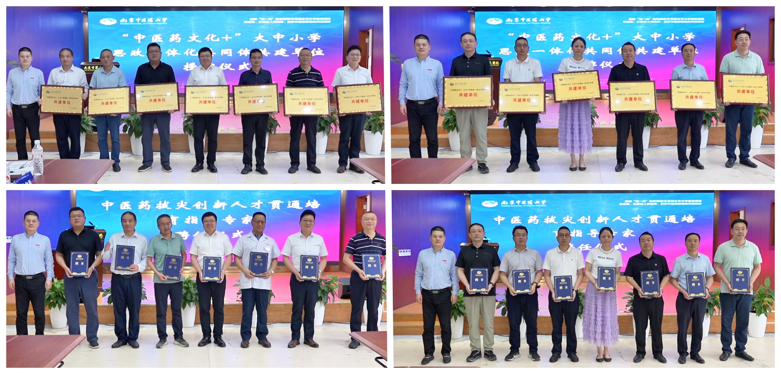 曹鹏为“‘中医药文化+’大中小学思政一体化共同体”共建单位颁发铜牌、为中医药拔尖创新人才贯通培育指导专家颁发聘书。