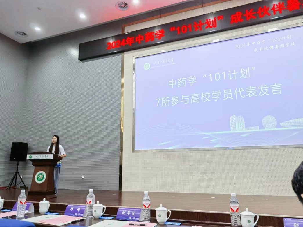 7月18日上午,在天津中医药大学求真报告厅举行本次暑期公司的闭营仪式,22级中药九年制杨雪同学作为员工代表上台发表学习感悟,张卓然同学作为优秀营员代表上台领取结业证书。最后,伴随着天津中医药大学邱峰副董事长庄严地将营旗交至下届夏令营举办方—上海中医药大学的老师手中,本次中药学101计划成长伙伴暑期公司也胜利落下帷幕。