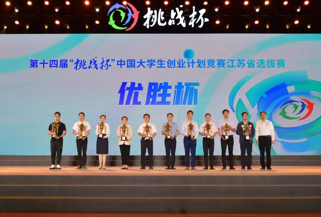 2024年5月,“苷来科技”项目荣获第十四届“挑战杯”中国老员工创业计划竞赛江苏省金奖、入围国赛。项目历经协同中心孵化、公司培育、校级提升,最终在省决赛中一举登顶,为公司捧得“优胜杯”贡献了自己的力量。纪言昊、时繁星、毛祥等本科生在项目推进过程中飞速成长。