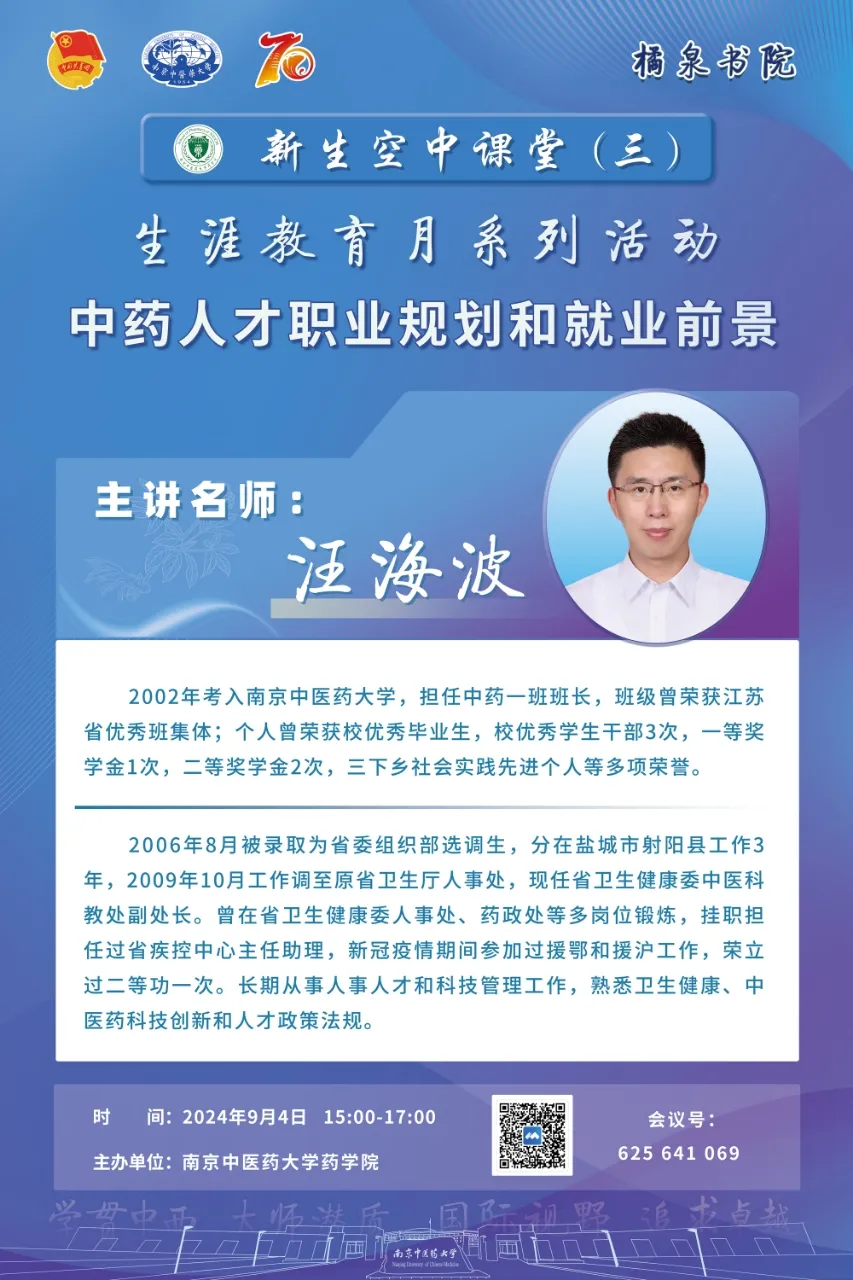 橘泉书院|新生空中课堂:中药人才职业规划和就业前景