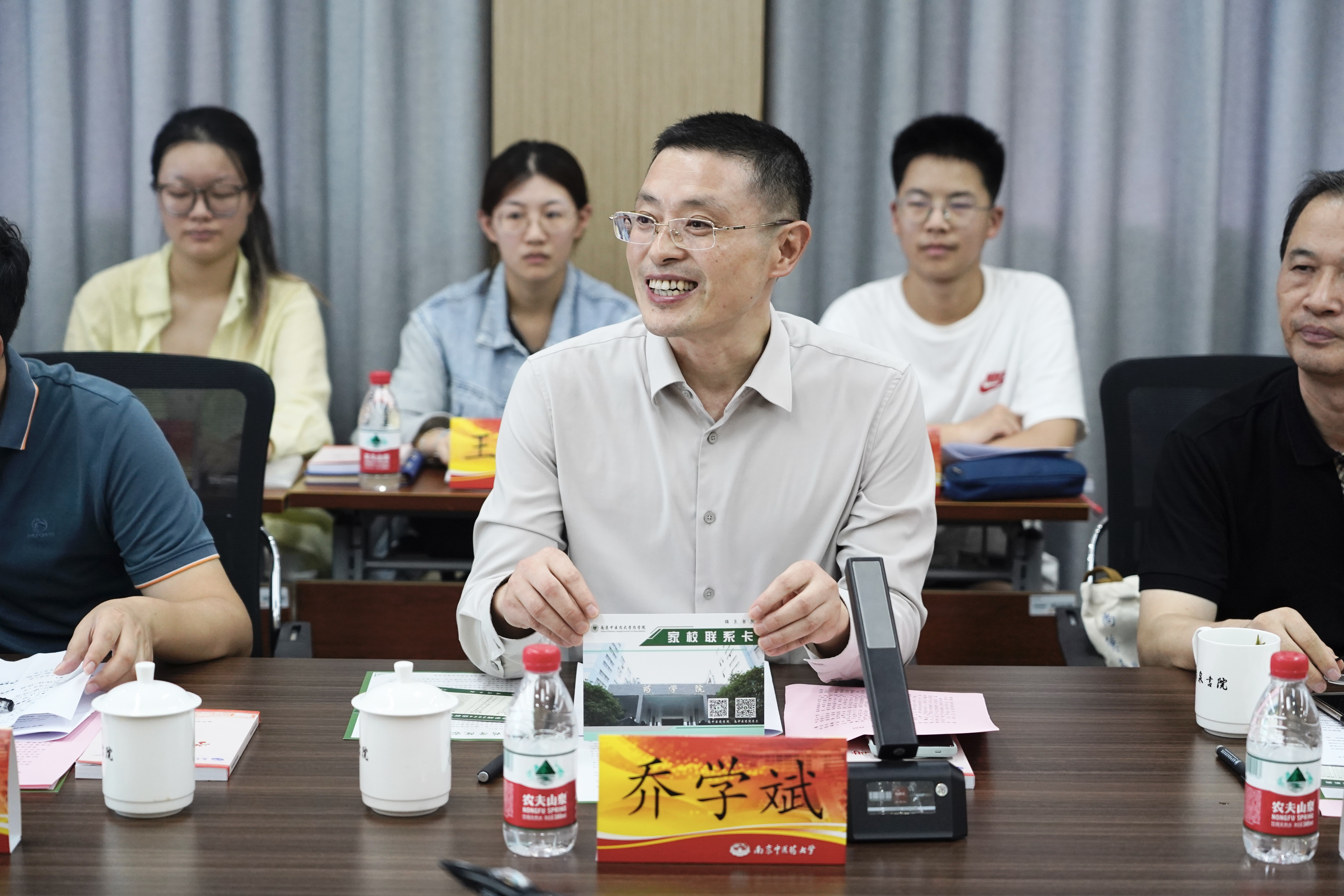 会上,乔学斌书记首先以亲切的话语询问了同学们的住宿条件与饮食情况,细微之处见真情。他强调,中药学作为承载着中华民族千年智慧的学科,其传承与发展离不开每一位学子的努力与创新。乔书记鼓励大家,在学习中药学的过程中,既要尊重传统,又要勇于探索,灵活运用现代科技手段,为中药学的现代化、国际化贡献力量。