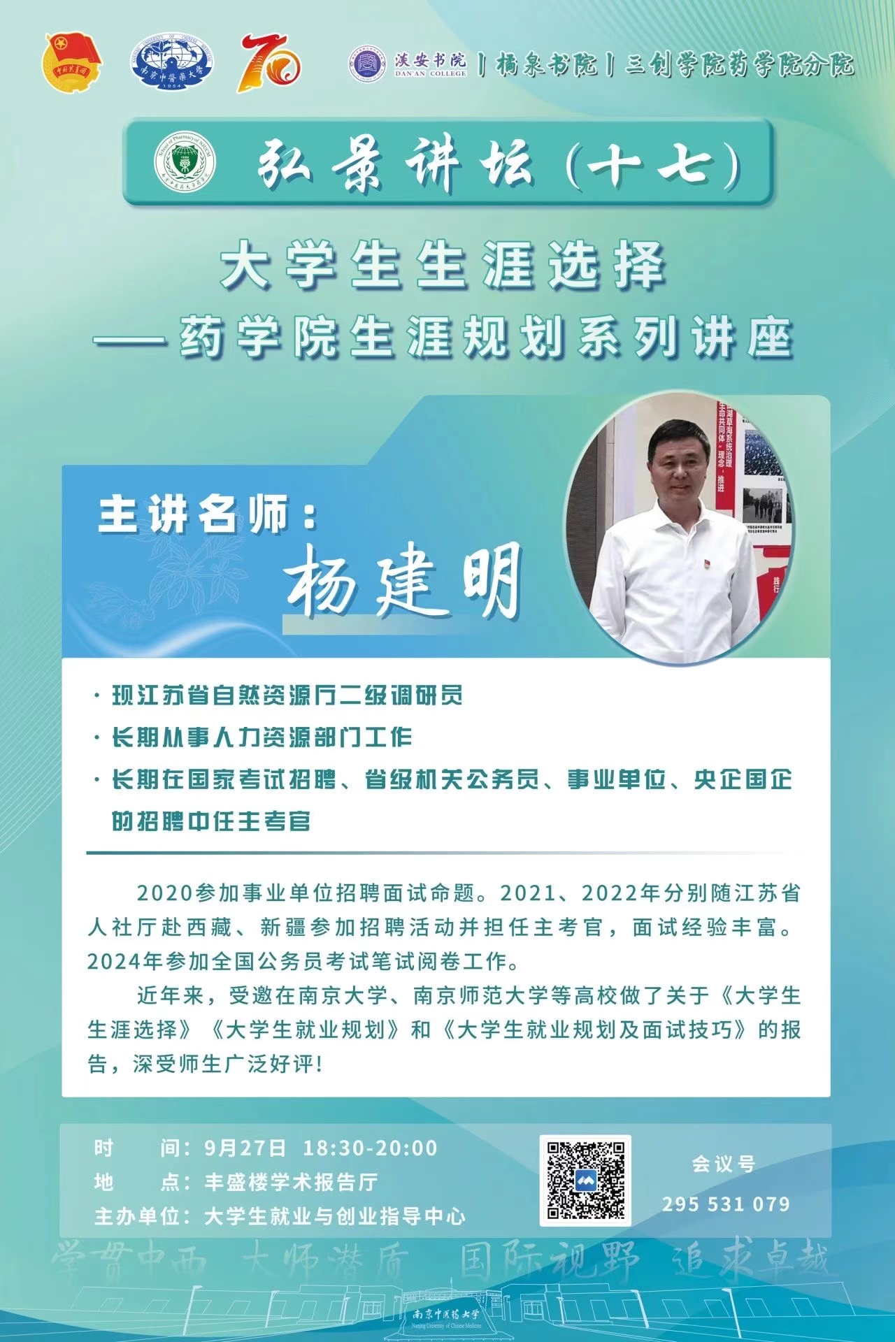 亲爱的同学们,你们将站在人生的十字路口,你们拥有无限可能:成为探索未知的科学家、引领变革的企业家、敢为人先的创新创业者、守护健康的临床药学专家、引领药政的政府药学管理专家。为了揭开职业选择的神秘面纱,点亮前行的灯塔,PlayAce游戏平台精心策划了一系列生涯规划讲座。这不仅是一次经验分享,更是一次探索自我、规划未来的旅程。让我们携手,为你的梦想插上翅膀!