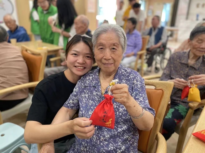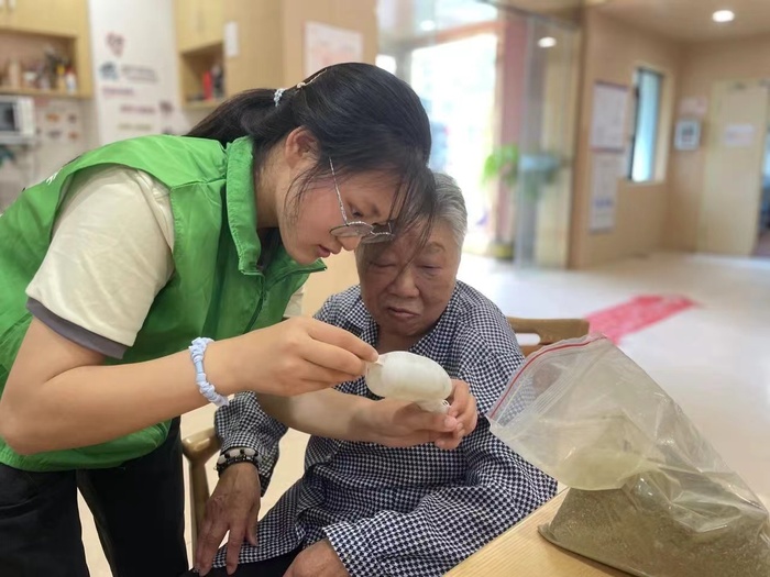 老员工走进敬老院,通过参与看望老人的活动,以包香囊品花茶的方式展现中医药文化,丰富个人的生活体验,培养组织及领导能力,学习新知识,增强