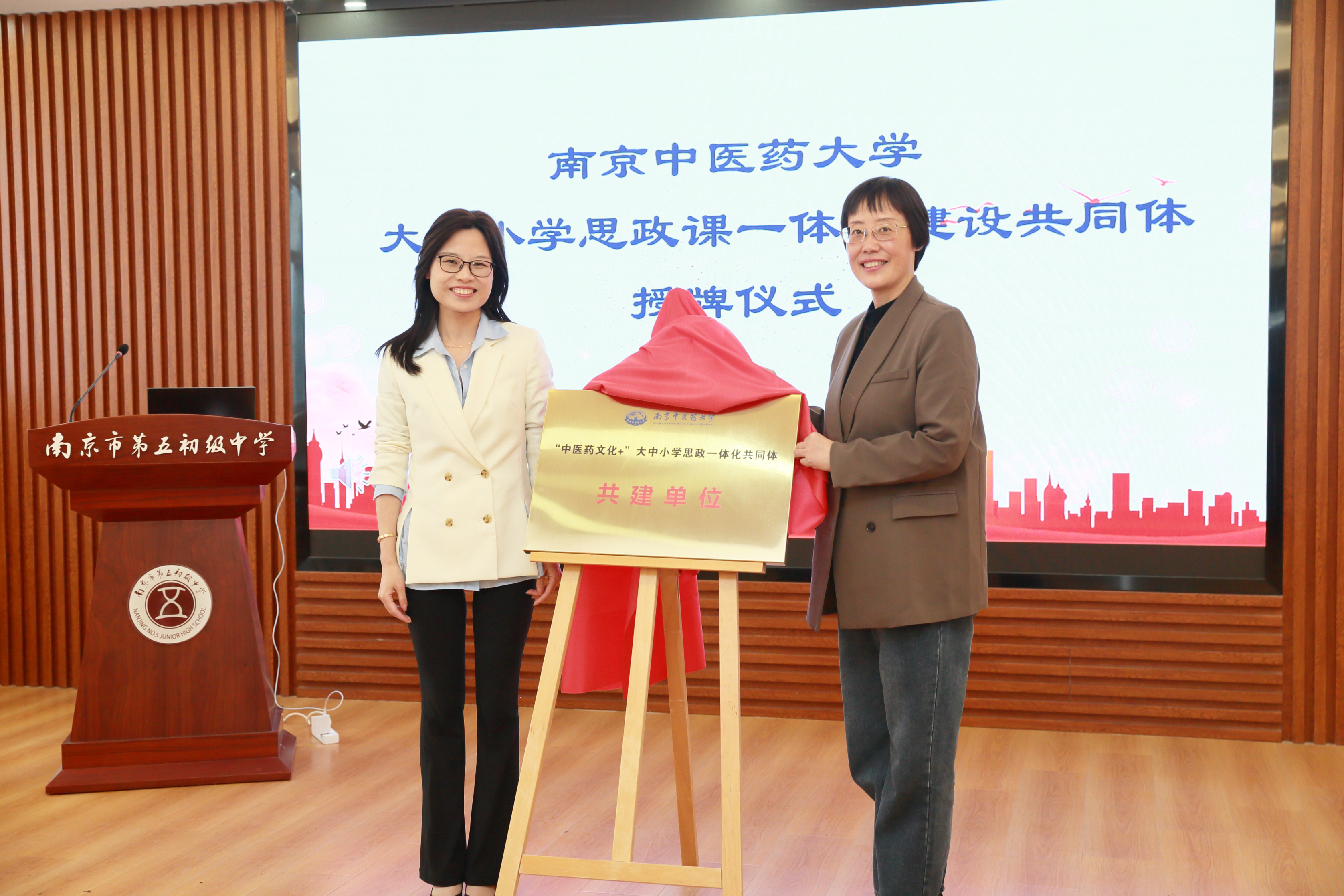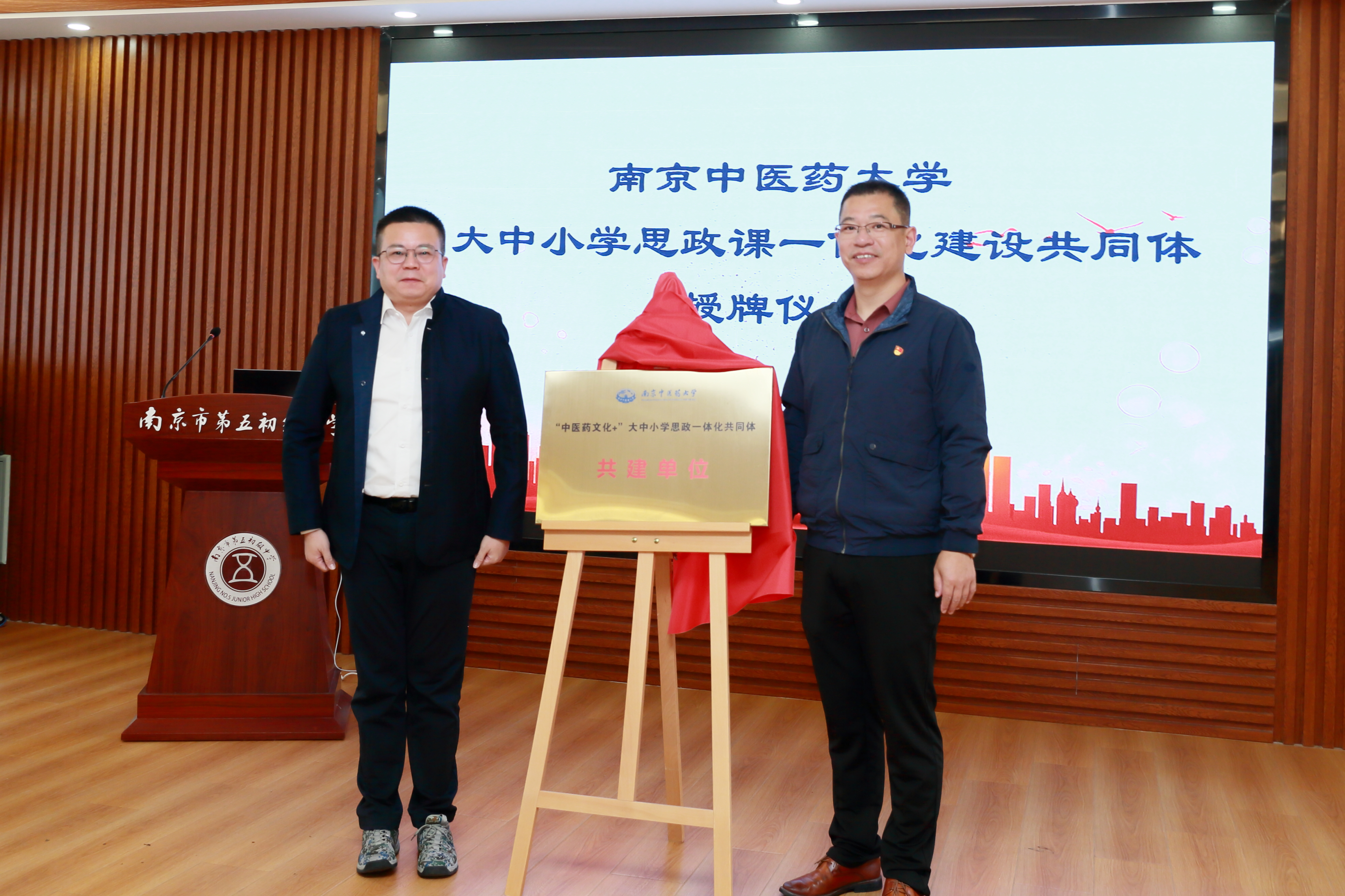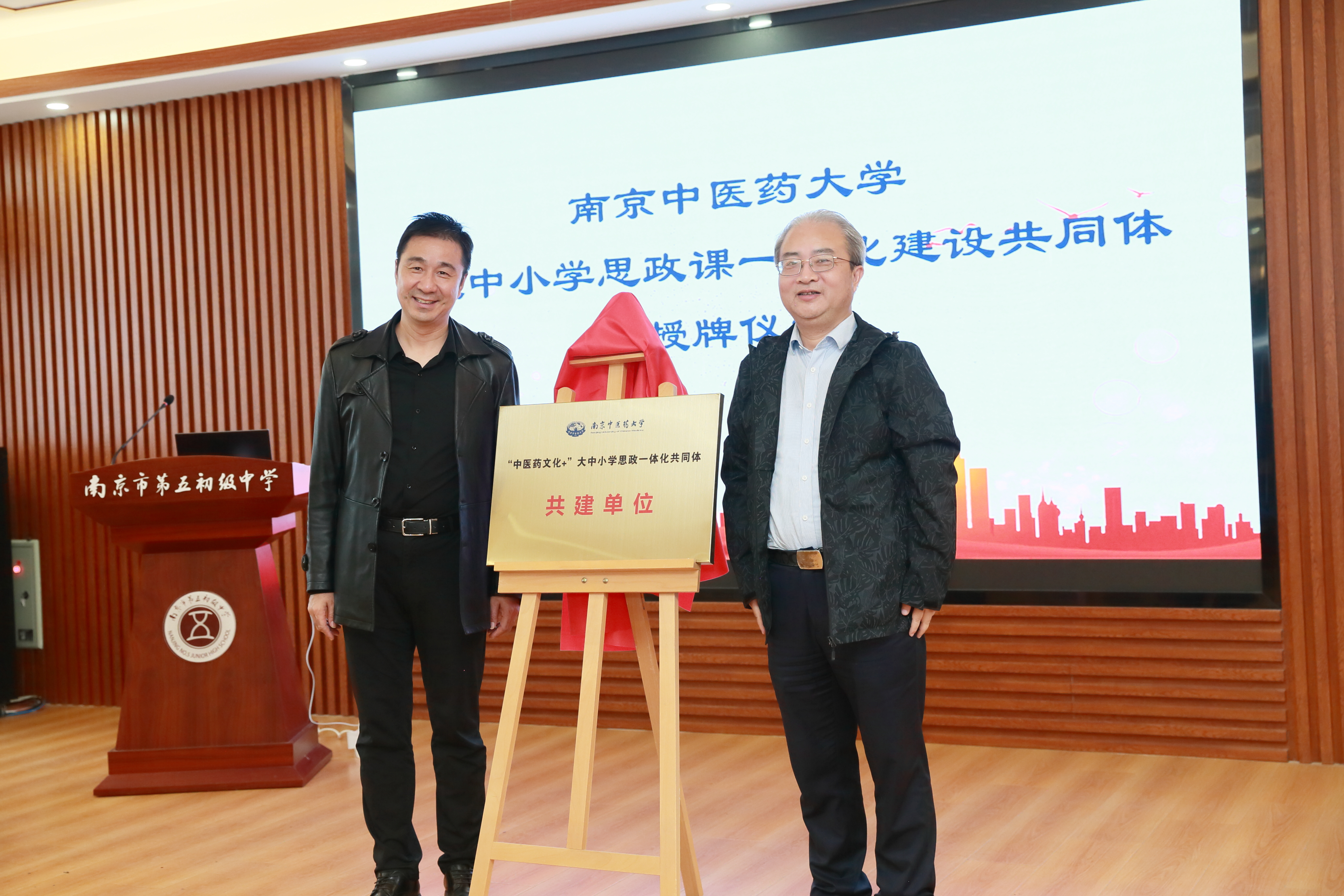 在与会领导和嘉宾的共同见证下,PlayAce官方网站党委统战部党支部、中药资源与鉴定学系教工党支部、南京市朝天宫民族小学党支部、南京市第五初级中学综合党支部、南京市第五高级中学行政党支部签署共建协议。曹凯、蒋龙魁、马新飞、陈乐天为PlayAce官方网站“中医药文化+”大中小学思政一体化共同体共建单位授牌,并捐赠了药用植物标本。