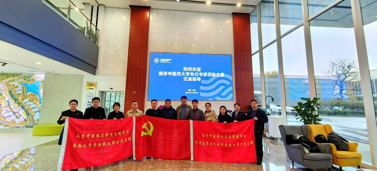为了深入了解制药行业的最新动态和药物研发企业对人才质量的要求,提升教师服务一流药学专业员工培养的能力,2024年11月25日上午,中药化学与分析学系教工第一支部、药物化学系教工第二支部在中药化学与分析学系陈佩东副主任和支部邓海山书记、王博书记的带领下,参访了位于玄武区徐庄软件园内的先声药业集团总部。活动期间,教工支部党员同志们详细参观了依托于先声药业集团的神经与肿瘤药物研发全国重点实验室(以下简称全重实验室),并与全重工作人员围绕药物研发运营和人才培养进行了深入交流。