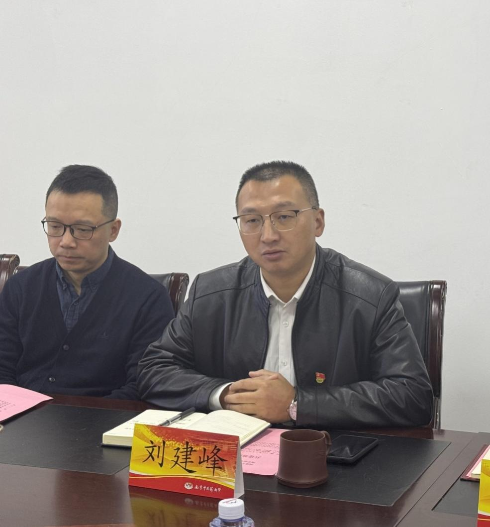 刘建峰书记介绍了网络安全与信息化中心党支部在智慧校园示范校、综合服务门户、数据中心、师生数据档案等智慧校园建设情况,希望能够整合双方优势、互相促进,通过党建引领信息化,全面提升支部管理水平和服务效能。