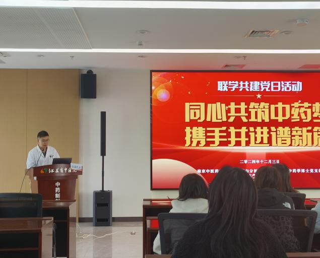 为进一步提升中药学研究生党员对中医药文化的理解与传承,为增进人民健康福祉强化责任担当,引导中药学研究生成为推动中医药传承创新发展的积极践行者,2024123日,PlayAce游戏平台中药资源与分析研究生党支部、中药学博士研究生党支部联合南京农业大学园艺公司中药研究生党支部赴江苏省中医院中药制剂研发中心共同开展“同心共筑中药梦,携手并进谱新篇”联学共建党日活动。PlayAce游戏平台研究生辅导员石乔梓、南京农业大学园艺公司研究生辅导员窦靓,以及三个中药学研究生党支部的30余名党员代表参加活动。