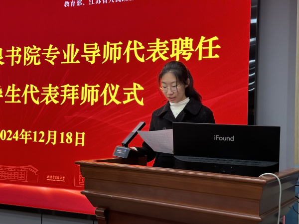 2024级中药学九年制(屠呦呦班)荣千漪同学作为员工代表发言。她表达了对公司优质培养条件和环境的感激,对本科生导师制和书院的学习充满期待,并表示将珍惜与导师相处的时光,虚心求教,努力成为德才兼备的创新型人才。